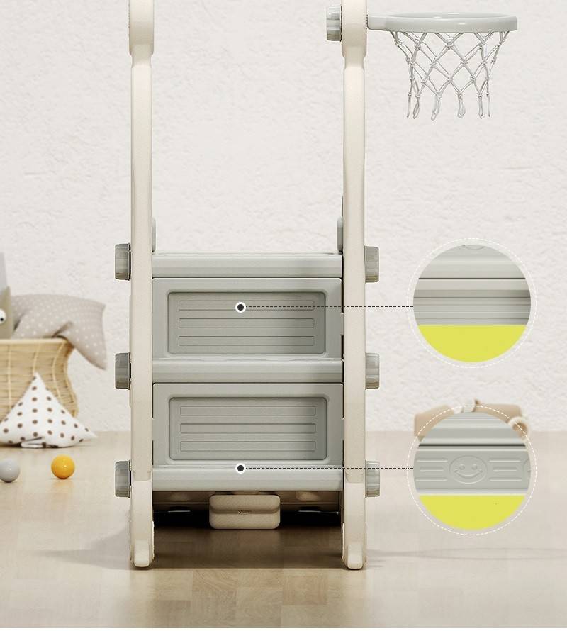 Coș de baschet integrat, la înălțime potrivită pentru cei mici.