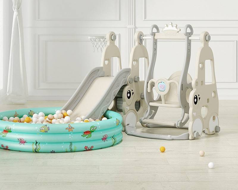 Ansamblu de joaca Kinderplay, cu leagan, tobogan, piscina cu bile, cos baschet