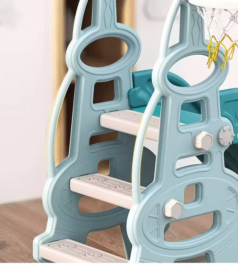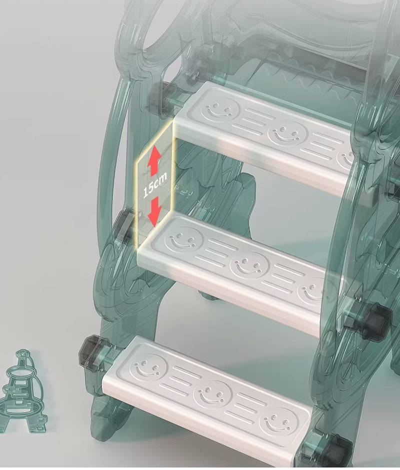 Toboganul are trepte late, antiderapante și o pantă blândă, fără coborâri bruște, pentru o alunecare sigură și confortabilă.