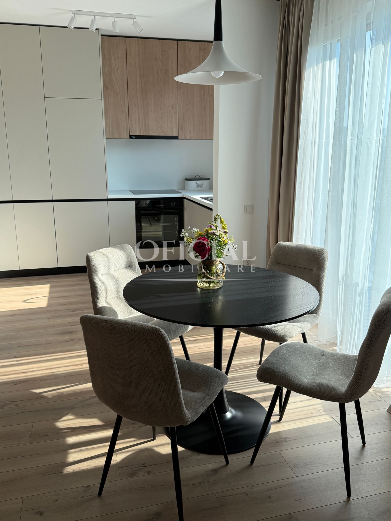 Modern mobilat si complet utilat, dispune de frigider, aragaz, masina de spalat rufe, de asemenea, la intrare este usa antiefractie, ferestrele sunt cu tamplarie PVC si geamuri termopan, iar incalzirea se face prin centrala termica proprie cu distribuție in pardoseala.