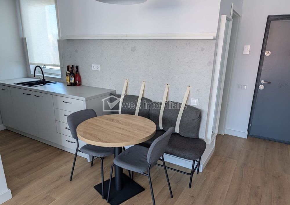 Imobilul se inchireaza complet mobilat si utilat cu electrocasnice noi, incalzire in pardoseala, aer conditionat, TV, masina de spalat rufe, baie cu geam.