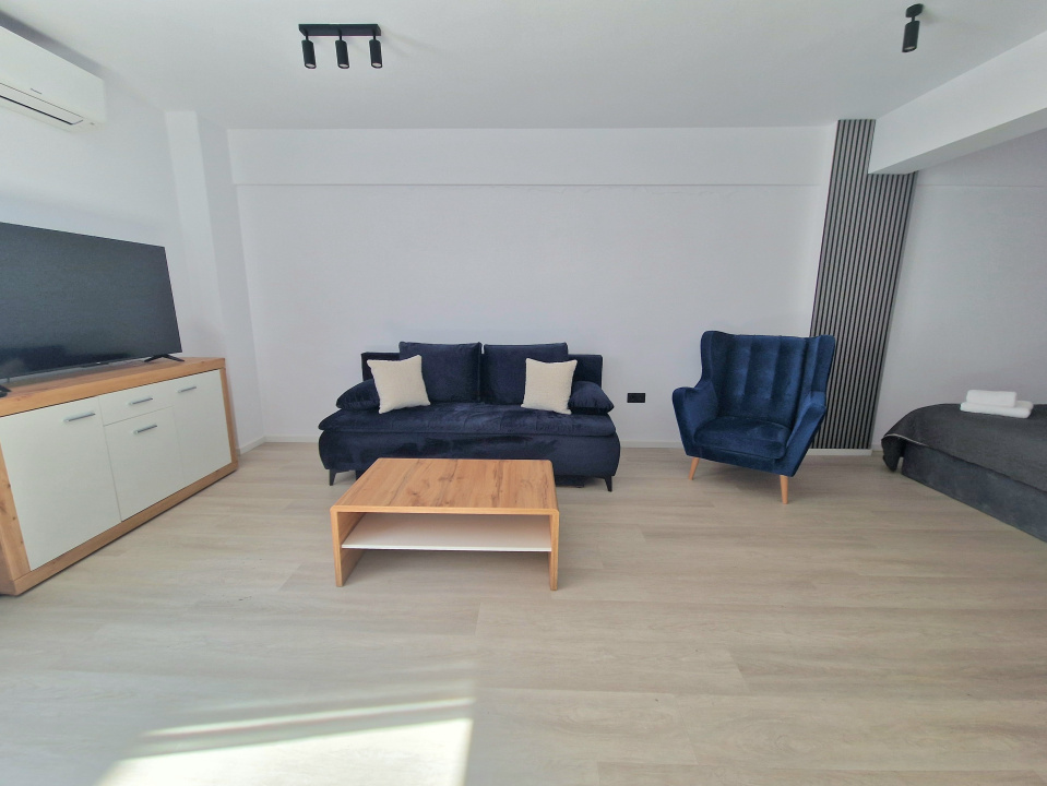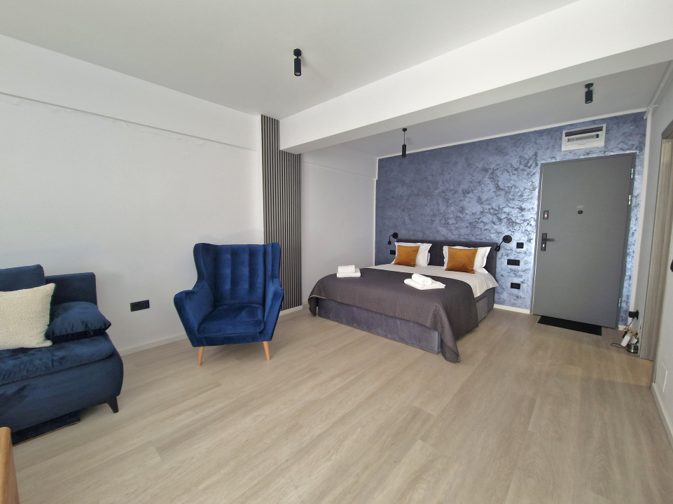Koncept Imobiliare va ofera spre inchiriere un studio modern situat in cartierul Manastur, pe strada Frunzisului, intr-o zona cu acces rapid catre principalele artere ale orasului si multiple puncte de interes. Proprietatea se afla in apropiere de USAMV si Kaufland Manastur, beneficiind de acces facil catre statii de transport in comun, magazine, farmacii si alte servicii utile pentru viata de zi cu zi. Apartamentul este amplasat la etajul 1 al unui imobil nou construit in anul 2024, cu regim de inaltime S+D+4, dotat cu lift. Locuinta are o suprafata utila de 44,5 mp la care se adauga un balcon deschis de 3,8 mp, cu orientare sud-estica, ce asigura lumina naturala pe parcursul zilei. Compartimentarea este moderna si eficienta, fiind compus dintr-o camera open space cu zona de living si bucatarie complet echipata, baie, dressing walk-in separat si balcon. Apartamentul se preda complet mobilat si utilat modern, fiind pregatit pentru mutare imediata. Printre dotari se numara masina de spalat rufe, frigider, plita, cuptor electric, cuptor cu microunde, hota, cafetiera, televizor si aer conditionat. Incalzirea se realizeaza prin centrala termica proprie cu calorifere, oferind confort termic si control eficient al consumului. Un avantaj important al proprietatii il reprezinta faptul ca apartamentul se afla la prima inchiriere, fiind situat intr-un imobil nou, cu finisaje moderne si compartimentare functionala. De asemenea, orientarea sud-vestica asigura o atmosfera placuta si luminoasa, iar dressingul walk-in separat ofera un spatiu generos pentru depozitare. In pretul chiriei este inclus si un loc de parcare in garajul subteran al imobilului, un beneficiu important in aceasta zona a orasului. Datorita pozitionarii si configuratiei interioare, proprietatea este ideala pentru o persoana singura sau un cuplu, studenti sau angajati care isi doresc o locuinta moderna, confortabila si bine conectata la oras. Pentru informatii suplimentare, programarea unei vizionari sau pentru a afla oferta noastra completa va stam la dispozitie telefonic, prin e-mail sau la sediul agentiei noastre, pe str. Aviator Badescu, nr. 19, Cluj-Napoca.
