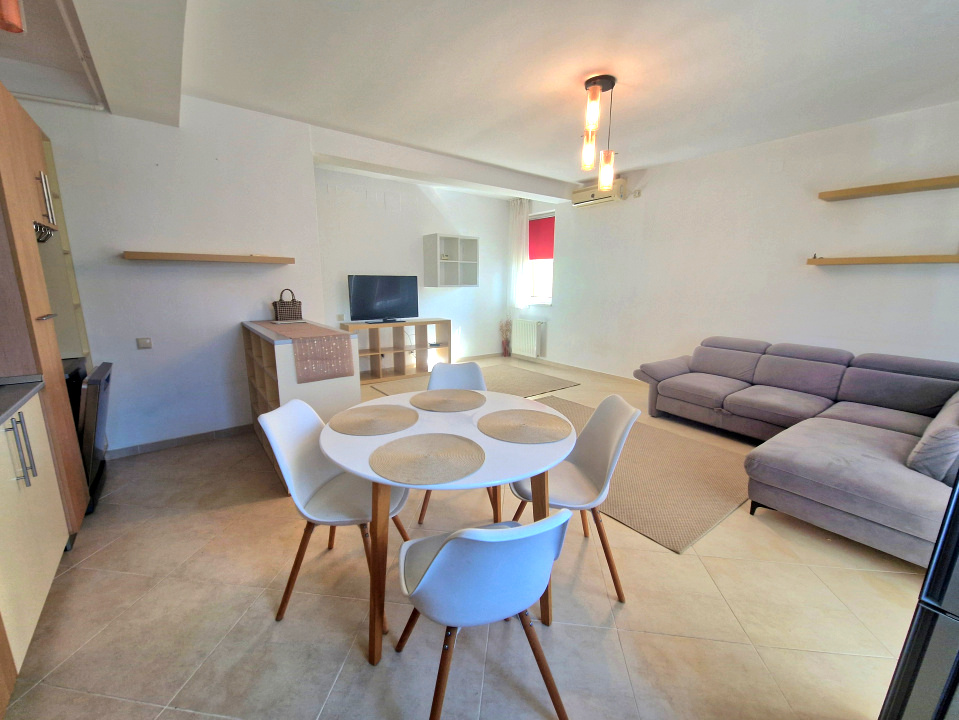 Koncept Imobiliare va ofera spre inchiriere un apartament modern situat in cartierul Buna Ziua, la 2 minute de mers pe jos de LIDL, intr-o zona apreciata pentru accesibilitate si pentru proximitatea fata de facilitati esentiale precum statii de transport in comun si sali de sport, restaurante, farmacii, etc.. Proprietatea este amplasata la etajul 2 al unui imobil construit in anul 2015, cu regim de inaltime S+P+2+M, beneficiind de o orientare sud-vestica ce asigura lumina naturala pe parcursul zilei si o atmosfera placuta in interior. Apartamentul dispune de o suprafata utila de 56 mp la care se adauga doua balcoane deschise, cu suprafata totala de aproximativ 10 mp, avand acces atat din living, cat si din dormitor. Compartimentarea este practica si bine gandita, fiind compusa din living open space cu bucatarie, dormitor, hol de intrare si baie. Spatiul este amenajat modern si este complet mobilat si utilat pentru a raspunde nevoilor de confort ale viitorilor chiriasi. Bucataria este complet echipata cu frigider, masina de spalat vase, plita pe gaz, cuptor electric si hota, iar apartamentul este dotat suplimentar cu masina de spalat rufe si aer conditionat. Sistemul de incalzire este asigurat prin centrala termica proprie cu calorifere, oferind control eficient al temperaturii si costuri optimizate pe perioada sezonului rece. Cele doua balcoane deschise reprezinta un avantaj important, oferind spatiu suplimentar pentru relaxare si aerisire naturala a locuintei. Un alt beneficiu major al proprietatii este locul de parcare exterior inclus in pret, situat intr-o parcare privata cu acces prin bariera, aspect care aduce un plus de confort si siguranta. Prin compartimentarea echilibrata, nivelul de mobilare si localizarea intr-o zona bine conectata a cartierului Buna Ziua, acest apartament este o alegere potrivita pentru o persoana singura sau pentru un cuplu care isi doreste o locuinta confortabila, intr-un imobil modern, cu acces facil catre principalele puncte de interes din oras. Se accepta animale de companie de talie mica. Pentru informatii suplimentare, programarea unei vizionari sau pentru a afla oferta noastra completa va stam la dispozitie telefonic, prin e-mail sau la sediul agentiei noastre, pe str. Aviator Badescu, nr. 19, Cluj-Napoca.