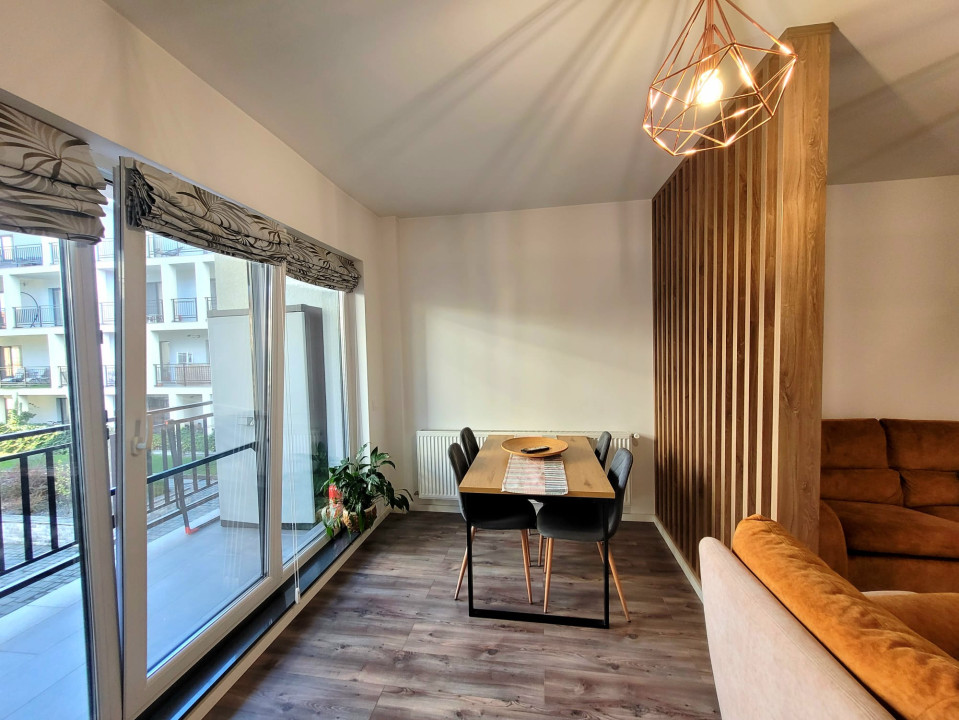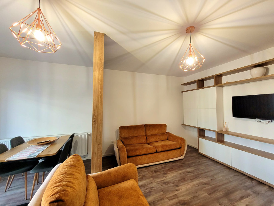 Koncept Imobiliare va ofera spre inchiriere un apartament modern situat in cartierul Europa, pe strada Aurel Gurghianu, intr-o zona apreciata pentru liniste, accesibilitate si proximitatea fata de facilitati precum magazine, statii de transport in comun si sali de sport. Proprietatea este amplasata la etajul 1 al unui imobil nou cu 3 etaje, oferind un cadru rezidential placut si bine organizat. Apartamentul dispune de o suprafata utila de 47 mp, la care se adauga doua balcoane ce insumeaza aproximativ 8 mp, oferind spatiu suplimentar pentru relaxare si aerisire naturala a locuintei. Compartimentarea este eficienta si bine echilibrata, fiind compusa din dormitor, living cu bucatarie open space, baie si hol de acces. Spatiul interior este amenajat modern, cu mobilier practic si functional, fiind pregatit pentru a oferi confort imediat viitorilor chiriasi. Este complet mobilat si utilat cu frigider, masina de spalat vase, plita electrica, cuptor si hota, masina de spalat rufe si televizor. De asemenea, dormitorul beneficiaza de dressing generos, oferind spatiu optim pentru depozitare. Incalzirea este asigurata prin centrala termica proprie, ceea ce permite reglarea individuala a temperaturii si un control eficient al costurilor de intretinere. Un avantaj important al acestei proprietati este locul de parcare subteran inclus in pret, care ofera siguranta si confort, mai ales intr-o zona rezidentiala aflata in continua dezvoltare. Prin compartimentarea practica si finisaje, apartamentul reprezinta o alegere potrivita atat pentru un cuplu, cat si pentru o persoana singura care isi doreste o locuinta confortabila, intr-o zona linistita, cu acces facil catre principalele puncte de interes ale orasului. Pentru informatii suplimentare, programarea unei vizionari sau pentru a afla oferta noastra completa va stam la dispozitie telefonic, prin e-mail sau la sediul agentiei noastre, pe str. Aviator Badescu, nr. 19, Cluj-Napoca.