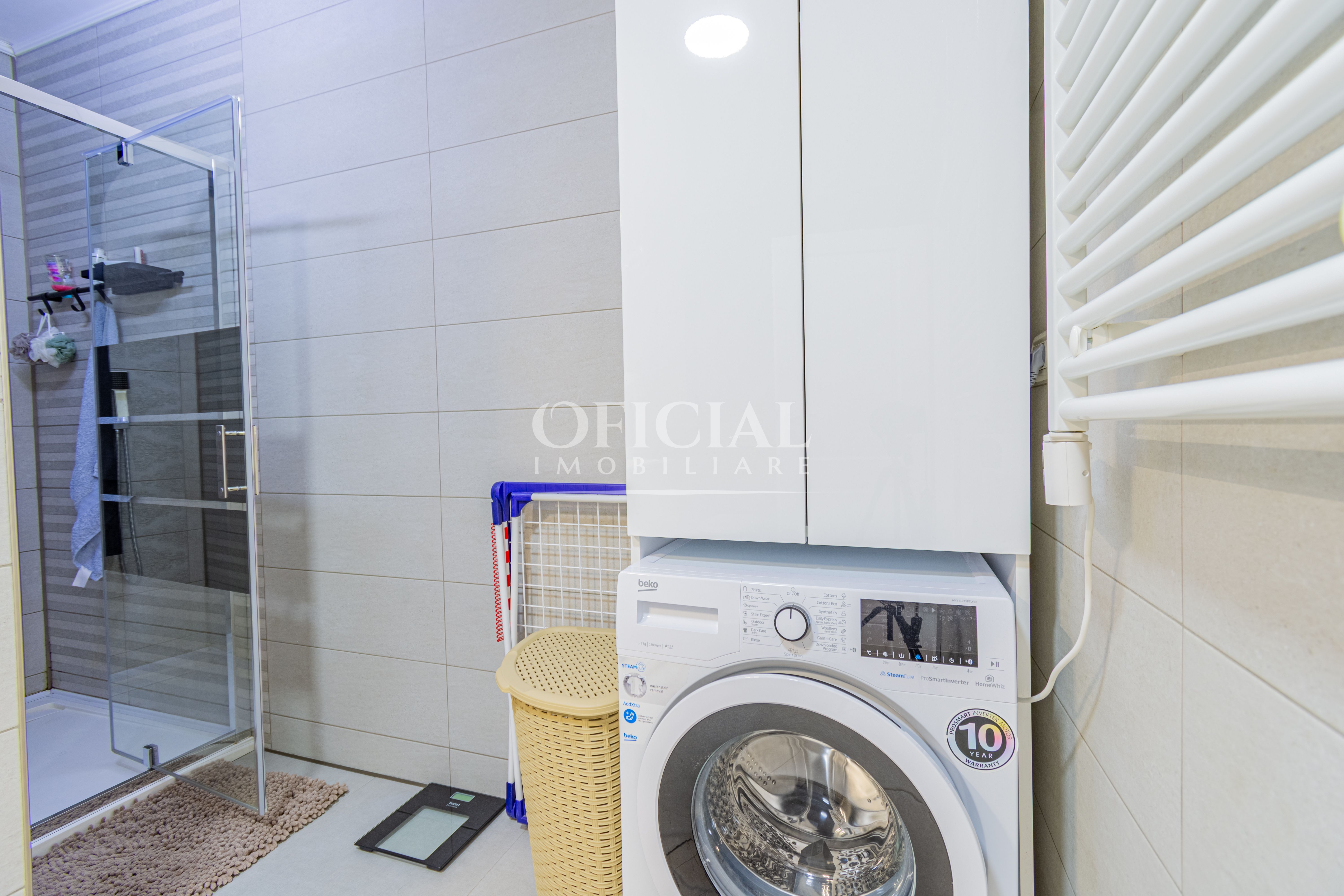 Apartamentul este modern mobilat si utilat, dispune masina de spalat haine, masina de spalat vase, hota, plita, cuptor electric, combina frigorifica, gresie, faianta, parchet, de asemenea, la intrare este usa antiefractie, ferestrele sunt cu tamplarie PVC si geamuri tripan, iar incalzirea se face prin centrala termica proprie, cu distributia in pardoseala.