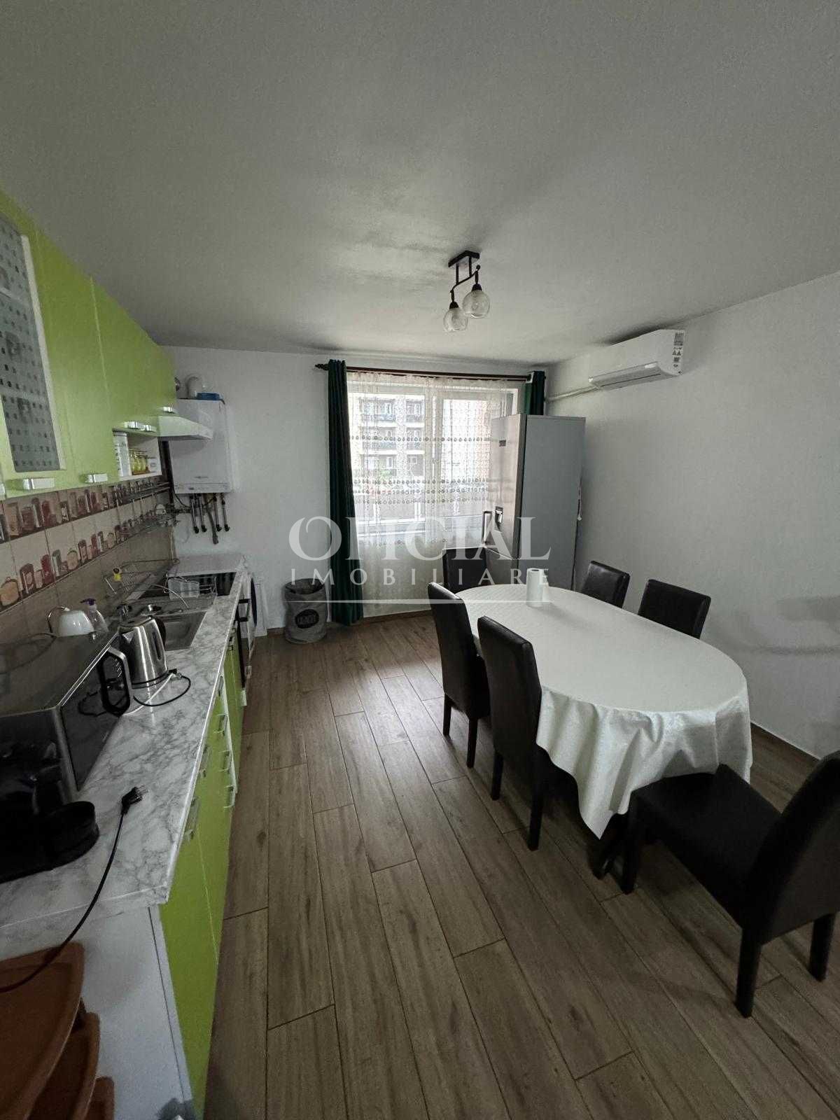Apartamentul este modern mobilat si complet utilat, dispune de frigider, aragaz, masina de spalat rufe, aer conditionat, de asemenea, la intrare este usa antiefractie, ferestrele sunt cu tamplarie PVC si geamuri termopan, iar incalzirea se face prin centrala termica proprie cu distributia in pardoseala.