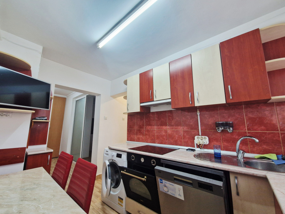Koncept Imobiliare va ofera spre inchiriere un apartament cu 2 camere decomandate, situat in cartierul Manastur, in apropierea Pietei Flora, o zona bine cotata pentru accesul facil catre magazine, piata agroalimentara, mijloace de transport in comun si alte facilitati urbane. Apartamentul este amplasat la etajul 8 al unui imobil dispus pe 10 niveluri, reabilitat termic, oferind un confort termic ridicat si o vedere deschisa asupra zonei. Suprafata utila este de 55 mp, la care se adauga un balcon inchis de 5 mp, integrat in suprafata utila, oferind un plus de spatiu functional. Compartimentarea este eficienta si bine organizata, fiind compusa din hol de intrare, bucatarie cu loc de servit masa, hol intermediar, doua camere decomandate, baie si balcon. Baia este dotata cu cada cu jacuzzi, oferind un plus de confort si relaxare. Locuinta dispune de centrala termica proprie cu incalzire prin calorifere, tamplarie PVC cu geam termopan si usa metalica la intrare, asigurand confort si siguranta. Apartamentul se inchiriaza complet mobilat si utilat, fiind echipat cu hota, plita electrica, cuptor electric, masina de spalat haine, masina de spalat vase, frigider, aspirator si doua televizoare smart. Pozitionarea in zona Piata Flora din Manastur reprezinta un avantaj important, oferind acces rapid catre centre comerciale, piata, statii de transport in comun si alte puncte de interes. Etajul superior asigura lumina naturala si o priveliste placuta. Prin compartimentarea decomandata, dotarile complete, prezenta jacuzzi-ului si amplasarea intr-o zona bine dezvoltata, aceasta proprietate reprezinta o alegere potrivita pentru persoane sau cupluri care isi doresc confort si accesibilitate. Pentru informatii suplimentare, programarea unei vizionari sau pentru a afla oferta noastra completa va stam la dispozitie telefonic, prin e-mail sau la sediul agentiei noastre, pe str. Aviator Badescu, nr. 19, Cluj-Napoca.