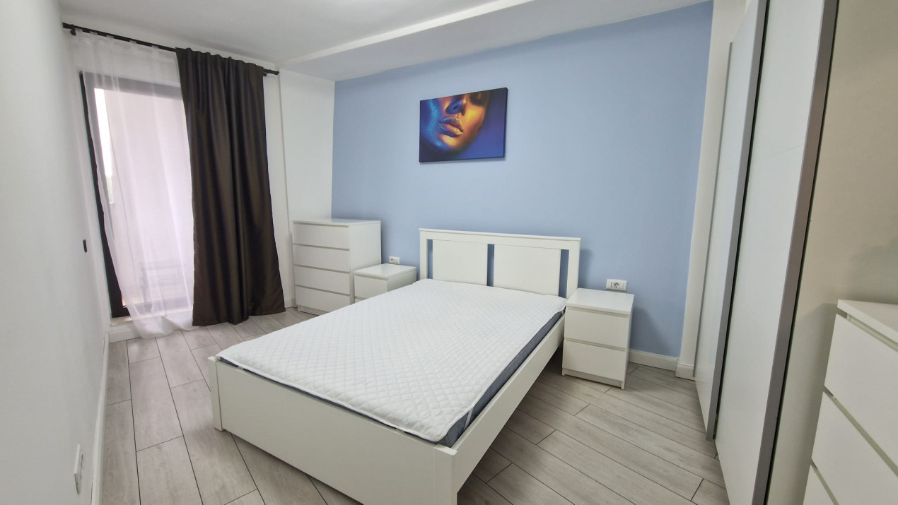 Koncept Imobiliare va ofera spre inchiriere un apartament cu 2 camere situat in ansamblul rezidential Wings. Apartamentul are suprafata utila de 50 mp, la care se adauga un balcon de 8 mp, cu acces atat din living, cat si din dormitor, spatiu ideal pentru relaxare si pentru a savura panorama frumoasa de care beneficiaza locuinta. Apartamentul este luminos si bine proportionat, oferind o atmosfera aerisita si placuta.