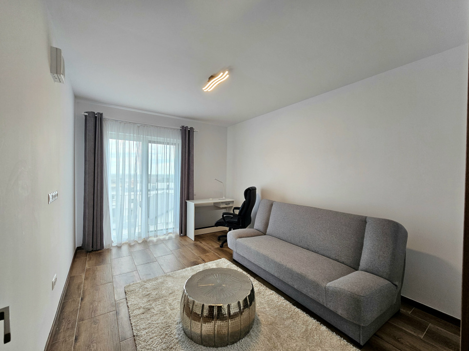 Koncept Imobiliare va ofera spre inchiriere un apartament ultrafinisat cu 3 camere, situat in ansamblul Grand Park Sud Residence, in cartierul Buna Ziua, intr-o zona rezidentiala aerisita, predominata de case si imobile cu regim redus de inaltime. Pozitionat la etajul 2 al unui imobil premium cu doar 2 niveluri si 6 apartamente, retras de la strada principala, proprietatea beneficiaza de liniste, intimitate si acces facil catre puncte de interes precum Liceul ELF, magazine, banci si statii de transport in comun. Apartamentul dispune de o suprafata utila de 85 mp, completata de un balcon generos de 10 mp, si este compartimentat eficient intr-un living open-space cu bucataria si loc de servit masa, un dormitor matrimonial, o camera care poate fi utilizata ca birou sau al doilea dormitor, doua bai moderne cu dus walk-in, o debara pentru depozitare si balcon. Locuinta este orientata Sud-Est, oferind lumina naturala pe tot parcursul zilei. Finisajele sunt de calitate superioara, iar mobilierul este realizat pe comanda, intr-un stil modern si functional. Apartamentul se inchiriaza complet mobilat si utilat, bucataria fiind echipata cu electrocasnice incorporate, inclusiv masina de spalat vase si masina de spalat rufe. Confortul termic este asigurat de centrala termica proprie cu incalzire prin pardoseala, sistem de aer conditionat multisplit cu unitati in fiecare camera, precum si sistem de ventilatie cu recuperare de caldura. De asemenea, proprietatea beneficiaza de ferestre cu trei foi de sticla si jaluzele electrice. Un alt avantaj important este reprezentat de comunitatea restransa si selecta, strada privata cu acces restrictionat prin bariera, precum si locul de parcare exterior inclus in pret. Atmosfera este ideala pentru cei care cauta un stil de viata linistit, intr-un cadru modern si bine organizat. Recomandam aceasta proprietate pentru un cuplu, o familie sau profesionisti care isi doresc un apartament premium, intr-o zona apreciata din Buna Ziua, cu acces rapid catre oras, dar ferit de agitatia urbana. Pentru informatii suplimentare, programarea unei vizionari sau pentru a afla oferta noastra completa va stam la dispozitie telefonic, prin e-mail sau la sediul agentiei noastre, pe str. Aviator Badescu, nr. 19, Cluj-Napoca.