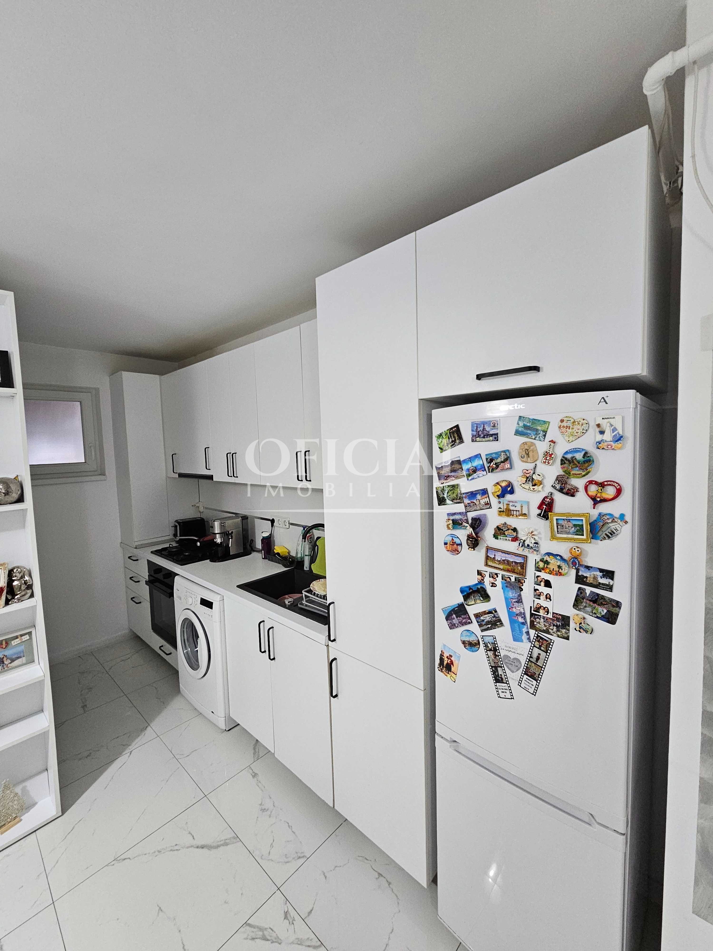 Apartamentul este modern mobilat si complet utilat, dispune de frigider, aragaz, masina de spalat rufe, TV, de asemenea, la intrare este usa antiefractie, ferestrele sunt cu tamplarie PVC si geamuri termopan, iar incalzirea se face prin centrala termica proprie cu distributia prin pardoseala.