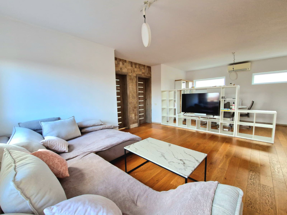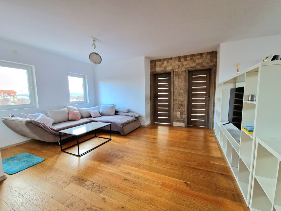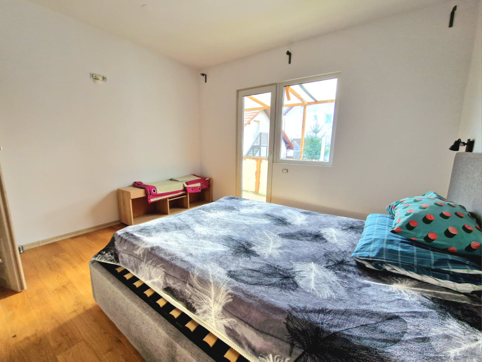 Apartamentul dispune de o suprafata generoasa de aproximativ 100 mp, fiind compartimentat optim in doua dormitoare luminoase, un living cu dining, o bucatarie inchisa complet utilata, o baie spatioasa, spatii de depozitare si o terasa de 12 mp orientata spre curtea interioara. Proprietatea beneficiaza de acces la curtea comuna, oferind un plus de spatiu exterior si o atmosfera placuta pentru relaxare. Imobilul este izolat termic la exterior si echipat cu centrala proprie si incalzire prin calorifere, asigurand eficienta si confort pe tot parcursul anului. Locurile de parcare sunt disponibile pe drumul cu servitute din fata casei.
