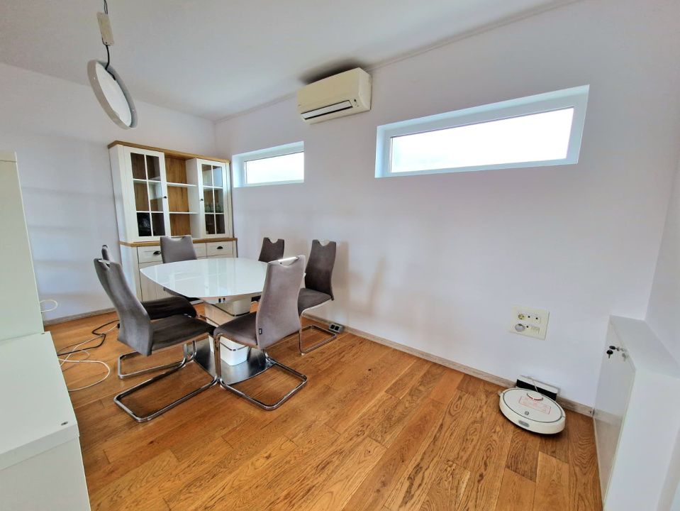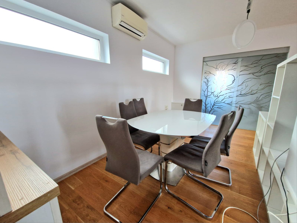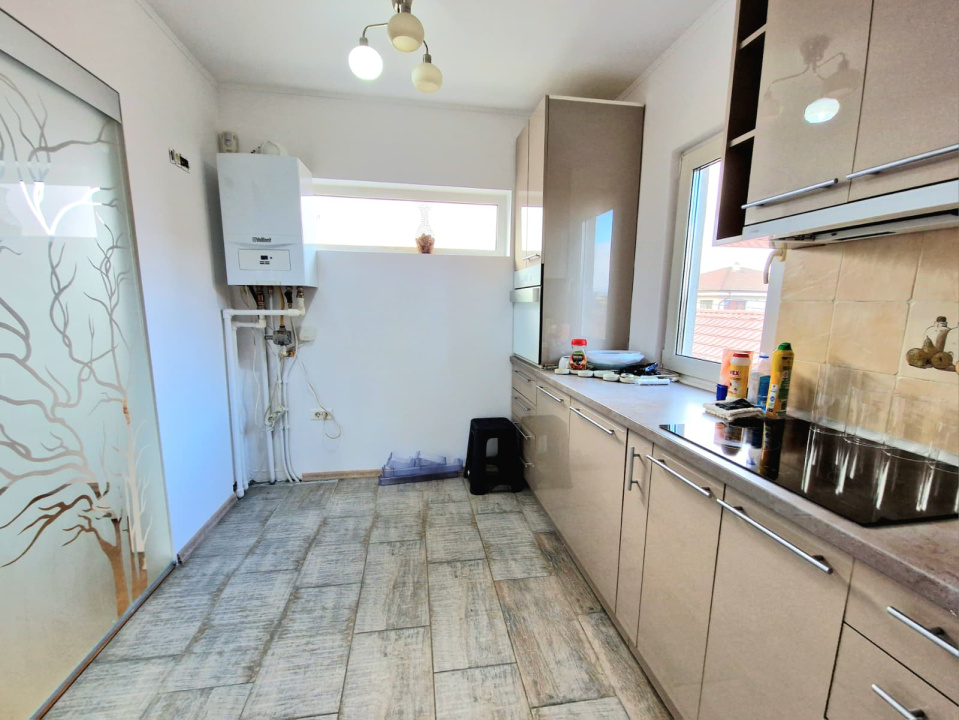 Finisajele moderne, mobilierul nou si bine intretinut, precum si dotarile complete ale bucatariei – plita, cuptor, frigider, hota si masina de spalat vase – contureaza o locuinta functionala si gata de mutare. Compartimentarea practica, luminozitatea naturala datorata orientarii multiple, terasa cu vedere spre curtea interioara si linistea specifica zonei de case reprezinta avantajele esentiale care diferentiaza aceasta oferta. Accesul printr-un hol tip casa scarii asigura un grad placut de intimitate, iar curtea generoasa amplifica senzatia de spatiu si confort. Sunt permise animalele de companie, ceea ce face proprietatea potrivita si pentru chiriasi care isi doresc flexibilitate si libertate in acest sens.