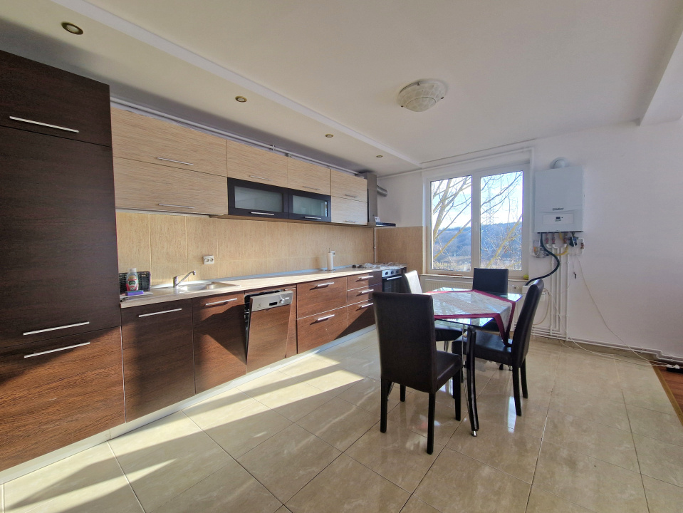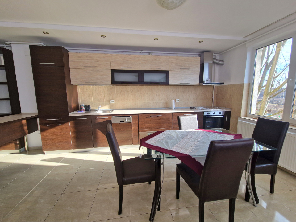 Koncept Imobiliare va ofera spre inchiriere un apartament spatios, situat in cartierul Gheorgheni, intr-o zona apreciata pentru echilibrul dintre accesibilitate si liniste, in imediata apropiere de Baza Sportiva Gheorgheni, LIDL, Kaufland si mijloacele de transport in comun. Proprietatea este amplasata la etajul 3 al unui imobil cu 4 niveluri, intr-un context urban retras cu trafic redus. Apartamentul are o suprafata utila de 100 mp si este semidecomandat, oferind un echilibru functional intre zona de zi si cea de noapte. Configurarea include trei dormitoare, un living generos cu bucatarie open space, doua bai, una dotata cu dus si cealalta cu cada, precum si un balcon deschis de aproximativ 9 mp, cu acces direct din living. In pretul chiriei este inclus un loc de parcare exterior, un avantaj important in zona. Locuinta se inchiriaza complet mobilata si utilata, cu mobilier modern, atent ales pentru confortul zilnic. Apartamentul este complet echipat, beneficiind de frigider, plita pe gaz, cuptor electric, hota, masina de spalat vase si masina de spalat rufe. Incalzirea se realizeaza prin centrala termica proprie si calorifere, asigurand un control eficient al costurilor si al confortului termic pe tot parcursul anului. Printre punctele forte ale proprietatii se remarca suprafata generoasa, compartimentarea practica, prezenta celor doua bai, balconul cu deschidere din zona de zi, locul de parcare inclus, proximitatea fata de zone comerciale si sportive, precum si pozitionarea intr-o zona linistita din Gheorgheni, cu acces rapid catre punctele de interes ale orasului. Apartamentul este recomandat in special pentru o familie care isi doreste un spatiu bine organizat, confortabil si complet echipat, intr-un cartier verde si bine conectat, cu facilitati urbane la distanta pietonala. Pentru informatii suplimentare, programarea unei vizionari sau pentru a afla oferta noastra completa va stam la dispozitie telefonic, prin e-mail sau la sediul agentiei noastre, pe str. Aviator Badescu, nr. 19, Cluj-Napoca.