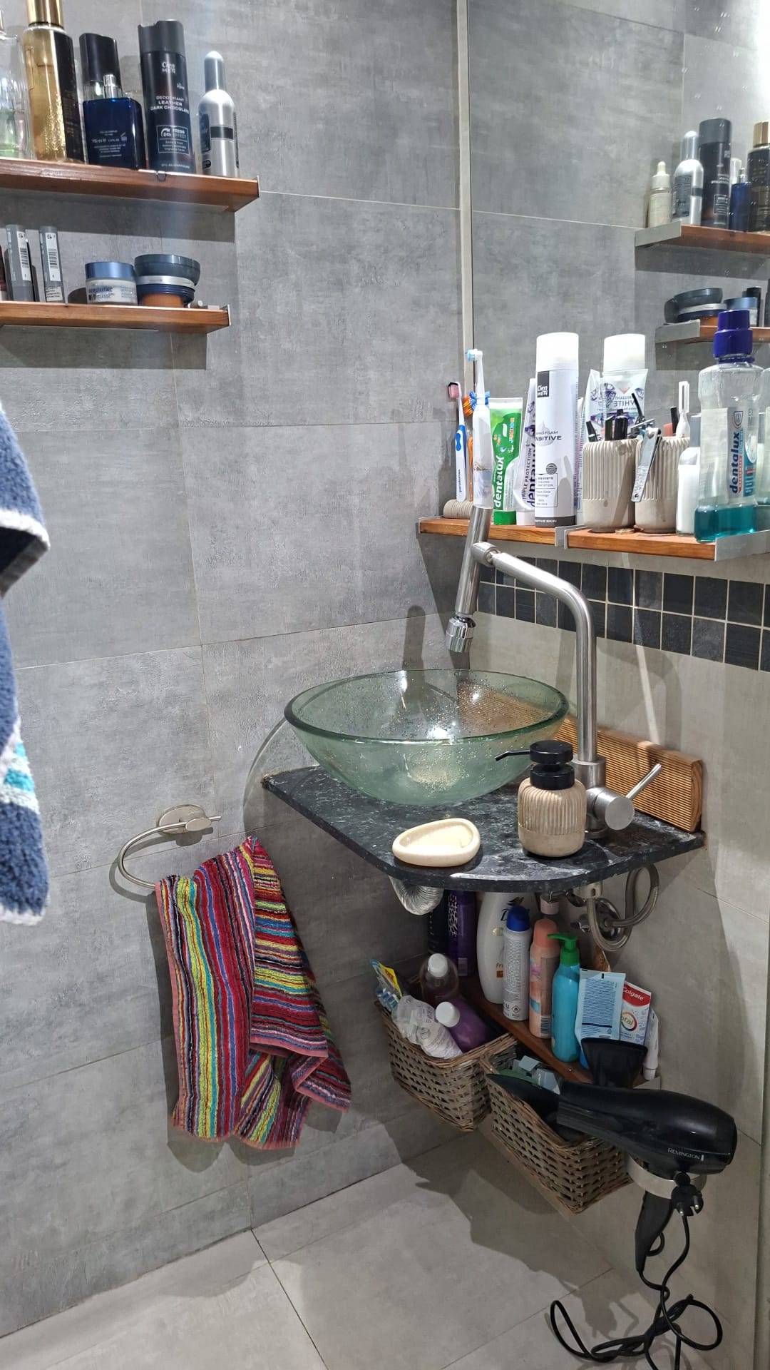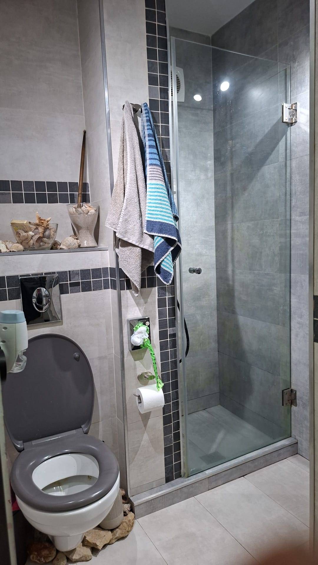Baia – recondiționata complet, sapa hidro-izolantă , dus cu ușă de sticla, chiuveta cu blat travertin.