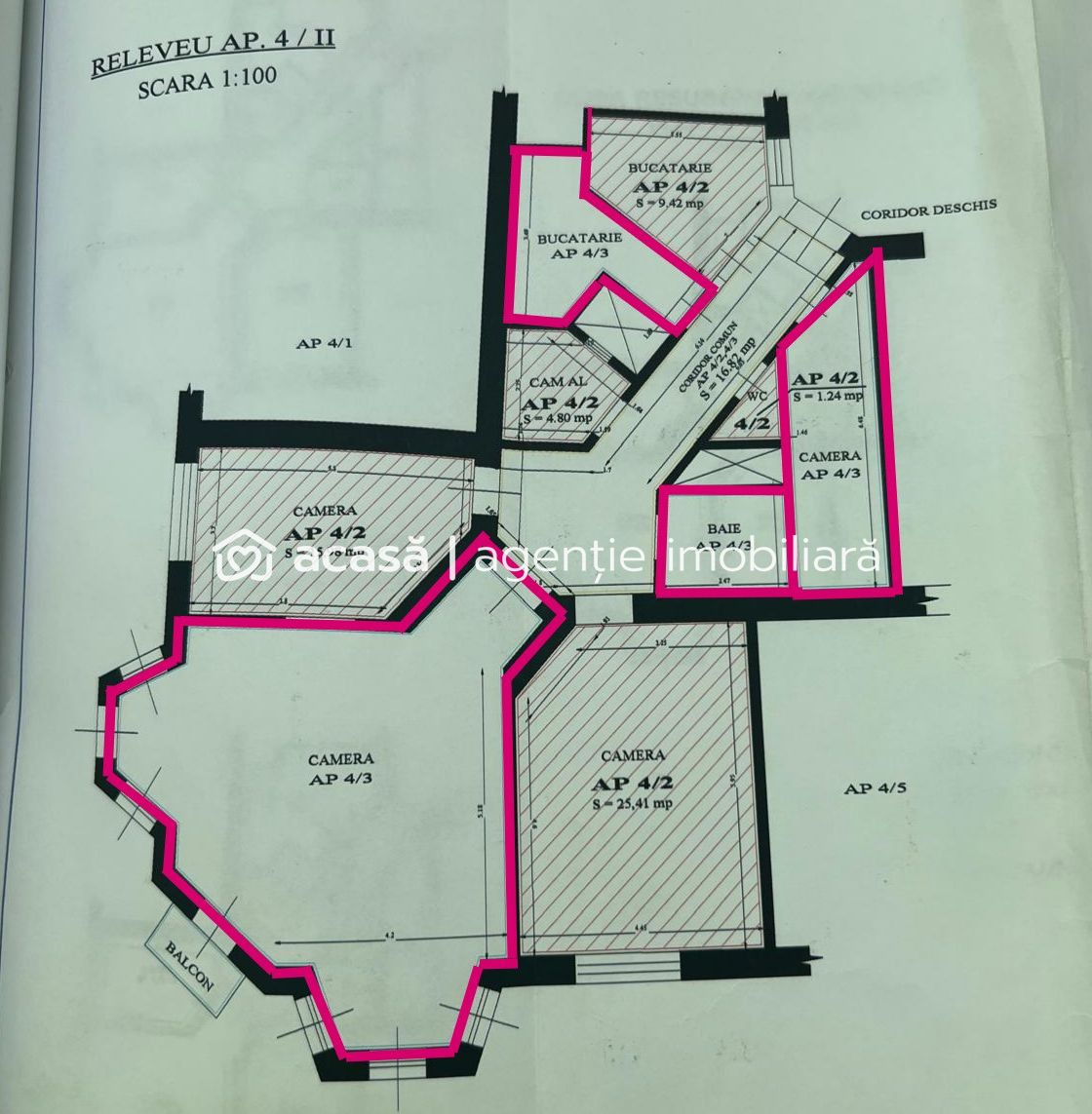 IMPORTANT: Apartamentul este neamenajat si are coridorul comun cu un alt apartament recent amenajat, care este de asemenea de vanzare ( Vezi schita in poze)