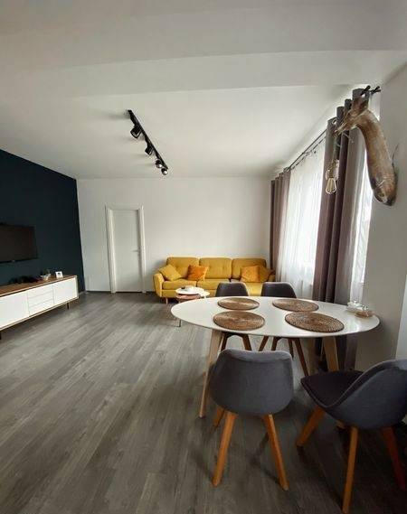 Apartament nou cu 2 camere decomandate, 54mp, etaj 1, finisat modern, mobilat si utilat, cu garaj sub bloc