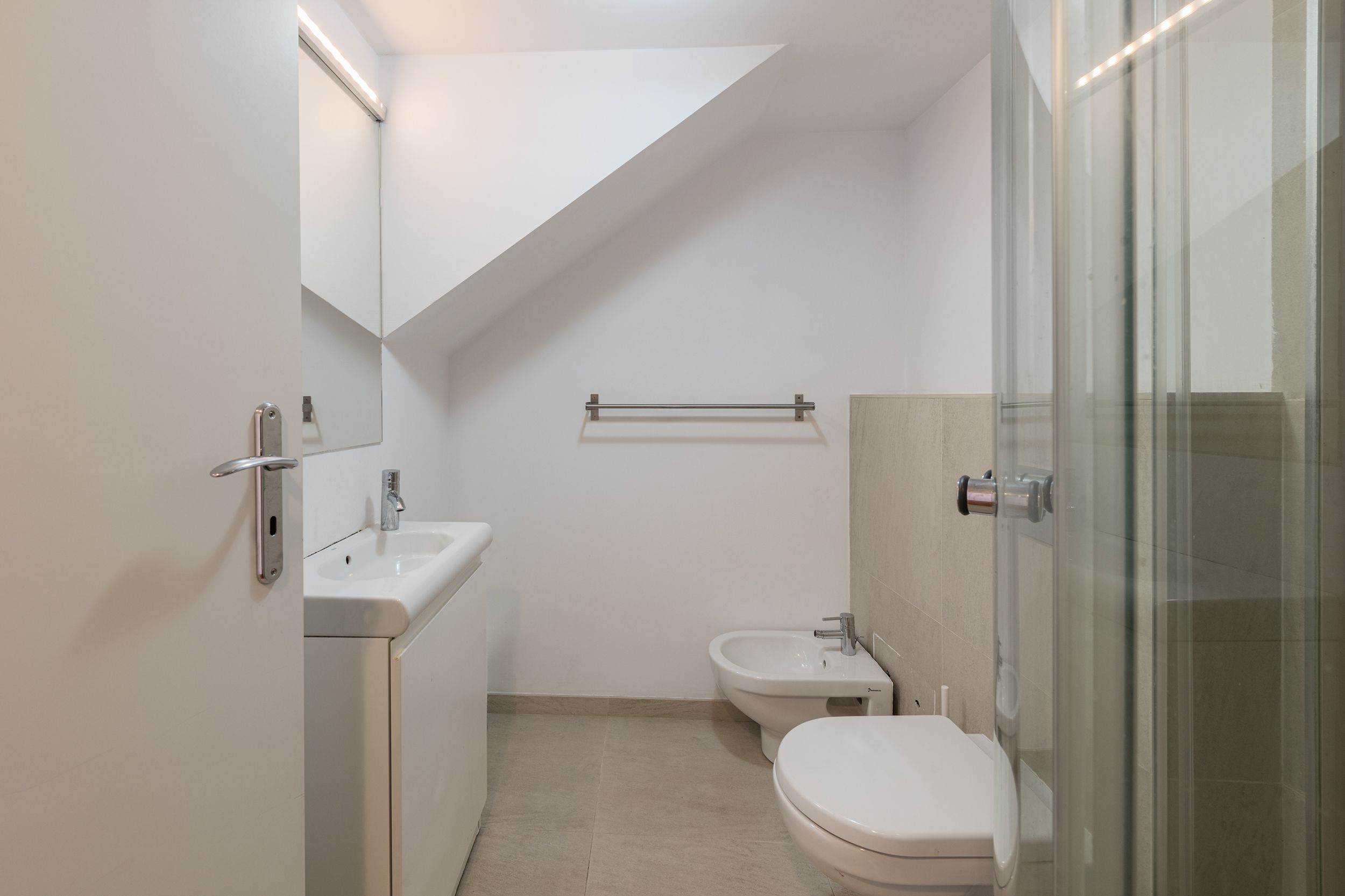 Are o compartimentare utilă cu 3 încăperi și 2 băi (vezi schița). Înălțimea mare a tavanului a permis amenajarea deasupra băilor a unei mini-mansarde cu un spațiu suplimentar de 12 mp, ce poate fi utilizat ca și birou, nișă de dormit sau dressing. Astfel suprafața utilă crește de la 82, la 94 de mp. Acces unic, direct din casa scărilor.