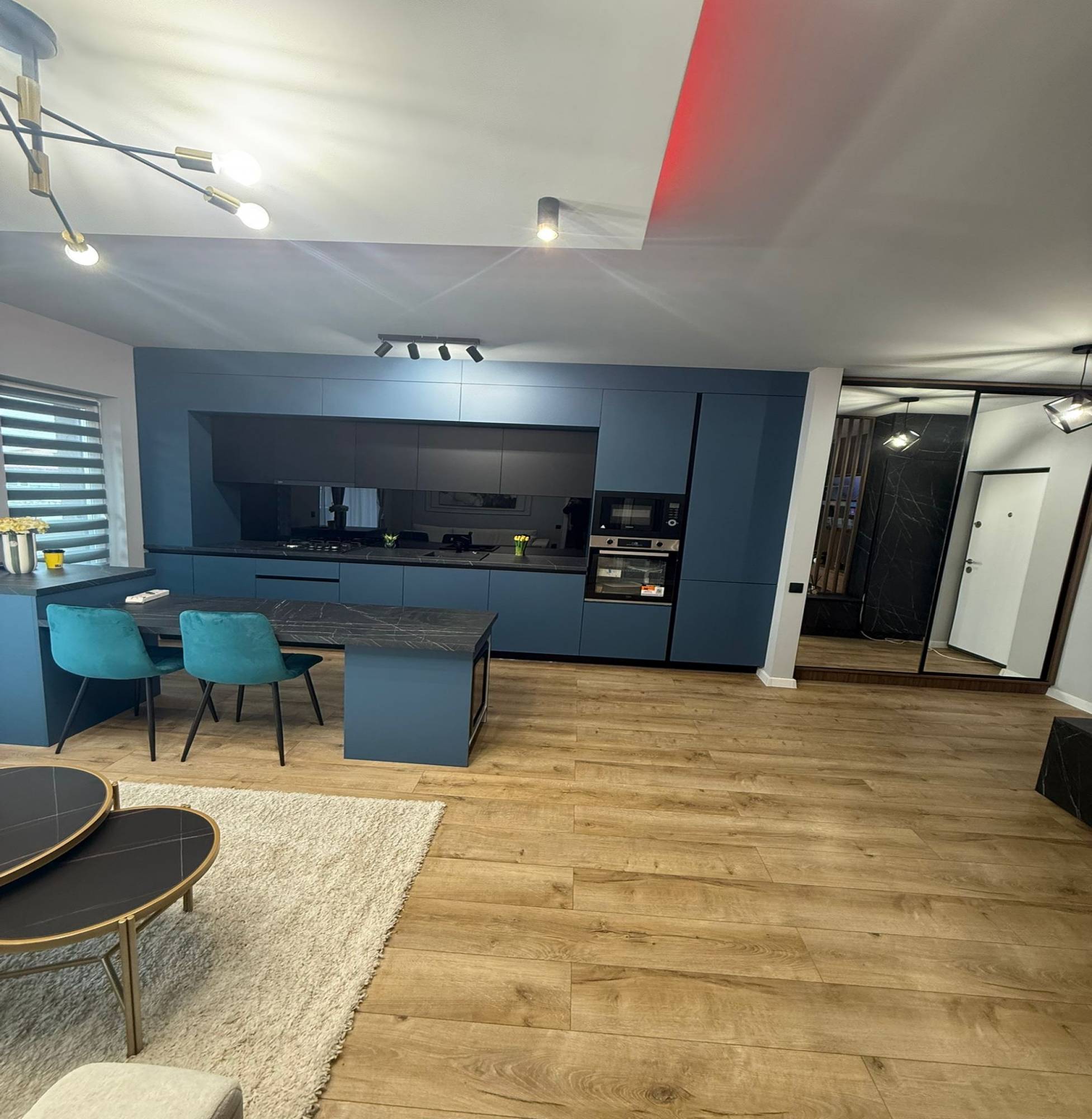 Se vinde mobilat utilat, exact ca in poze, are încălzire în pardoseală, mobilier executat la comandă, electrocasnice noi, aflate în garanție. Opțional se poate achiziționa și o parcare subterană cu CF individual la prețul de 7000 euro. Prețul afișat este negociabil
