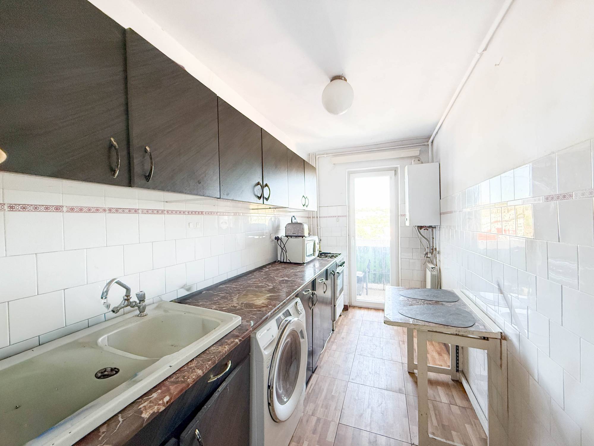 Apartamentul este decomandat, are o suprafață utilă de 53 mp și este situat la etajul 9/10, într-un imobil dotat cu lift.