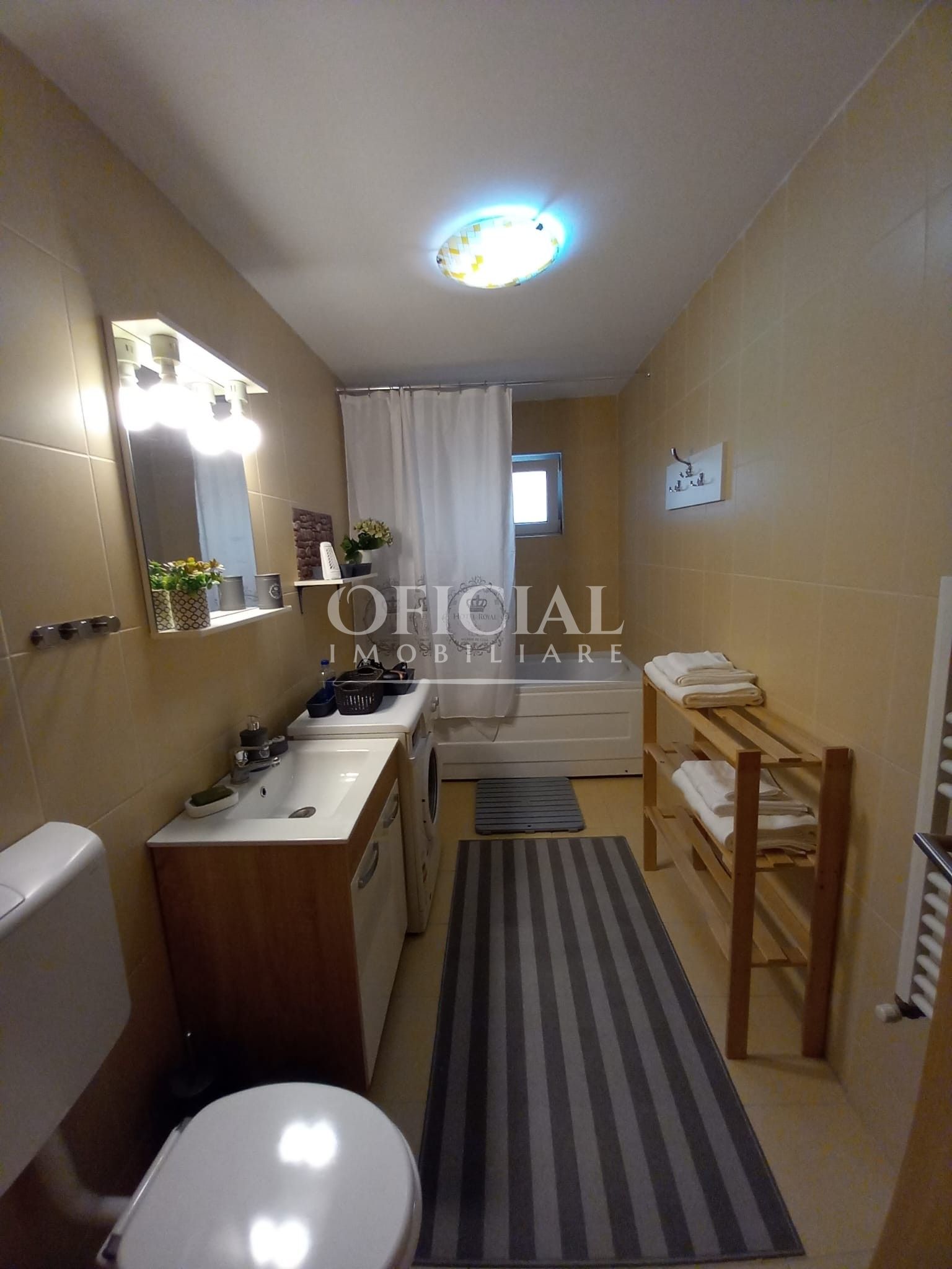 Apartamentul este modern mobilat si complet utilat, dispune de frigider, aragaz, masina de spalat rufe, de asemenea, la intrare este usa antiefractie, ferestrele sunt cu tamplarie PVC si geamuri termopan, iar incalzirea se face prin centrala termica proprie.