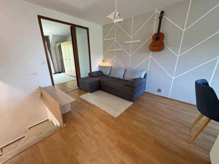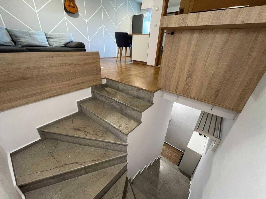 Va propunem spre vanzare un apartament cu 2 camere format dintr-un Loft superb cu Open Space, un Dormitor si o Baie, situat la nivelul 2 din 3 intr-un bloc de pe str. Frunzusului din Cluj-Napoca, intr-o curte retrasa fata de strada, aproape de Paraul Popii. Zona este superba: USAMV este la 10 minute de mers pe jos. Toate obiectivele UTCN de pe str. Observatorului sunt accesibile direct cu autobusul 43. Parcul central si perimetrul UNTOLD se afla la 15-20 min. de mers pe jos. In apropiere se gasesc magazine (inclusiv Lidl si Kaufland), farmacii, sali de fitness, piata etc.Accesul este foarte usor, in orice zona a orasului: in imediata vecinatate a imobilului sunt statiile liniile 43 (trasee Vivo Mall / Cart. Grigorescu -- Observator -- Calea Turzii); la 5 minute de mers pe jos sunt statii ale tuturor celorlalte linii urbane. Apartamentul se vinde complet mobilat si utilat, asa cum se vede in poze - inclusiv electrocasnicele - asa incat poate fi ocupat imediat. Blocul a fost finalizat in 2009. Apartamentul este amplasat pe 2 nivele, cu scara interioara: la nivelul de jos (etajul 1 al blocului) este usa de intrare si un mic vestibul unde se afla cuierul ; la nivelul de sus se afla livingul cu bucataria, dormitorul si baia. Regimul de inaltime al blocului este Demisol Parter Etaj Mansardă Pod amenajat. Apartamentul este situat la nivelul al doilea - mansardă. Nivelul de deasupra - podul - este amenajat ca spatiu de locuit, fiind parte a unui apartament invecinat. Eficienta energetica a apartamentului este foarte buna: la exterior blocul are un termosistem de 15 cm, iar nivelul de deasupra este locuit, asa incat costurile cu incalzirea (iarna) sau cu racirea (vara) sunt foarte mici. Apartamentul are centrala termica proprie si aparat de aer conditionat . Ambele pot fi conectate la internet si comandate prin aplicatie de pe telefon. Electrocasnice: frigider Indesit, masina de spalat vase Beko, masina de spalat rufe cu uscator incorporat Beko, cuptor electric plita pe gaz Hansa, hota Gorenje, cuptor cu microunde Whirlpool, espressor Saeco - toate cumparate in 2017. . Compartimentare: "Apartament cu doua camere" sau "One bedroom apartment" - Din scara blocului se intra in vestibul, de acolo se urca pe scari in "open space", de unde se intra in dormitor sau in baie. Suprafata totala este de 50 mp, compusa din S.U. 45,74 mp, la care se adauga vestibulul de jos si balconul. Se vinde prin agentie ID 354226