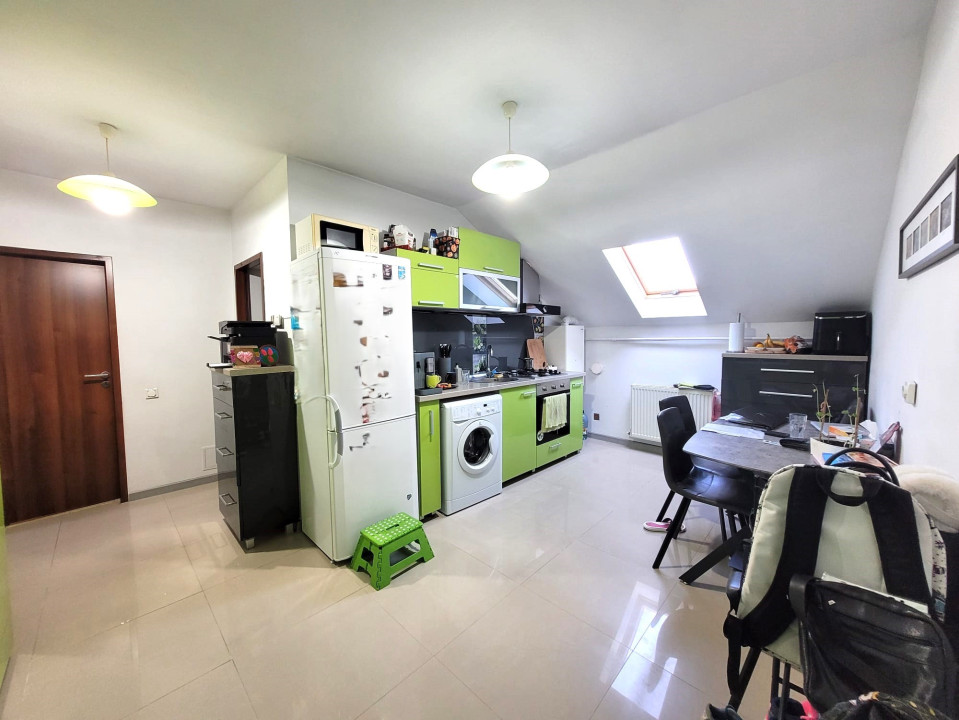 Koncept Imobiliare va ofera spre vanzare un apartament cu 2 camere decomandate pe strada Lunii, zona Golden Tulip, in cartierul Zorilor. Apartamentul se afla la mansarda unui imobil reabilitat termic, are suprafata utila de 52 mp si este compartimentat astfel: hol intrare cu bucatarie si loc de servit masa, 2 dormitoare si baie. De asemenea, dispune de un pod individual de 25 mp, cu acces din apartament prin scara interioara, fiind bine izolat si compartimentat eficient pentru a maximiza spatiul. Apartamentul dispune de centrala termica proprie si se vinde mobilat si utilat cu: hota, plita pe gaz, cuptor, cuptor cu microunde, frigider, masina de spalat si aer conditionat. Imobilul este amplasat intr-o zona linistita, inconjurata de natura, in apropiere de locuri de joaca pentru copii, cu acces facil catre scoli, gradinite, mijloace de transport in comun si alte puncte de interes. Datorita pozitionarii si a compartimentarii, acesta se recomanda atat pentru locuinta, cat si pentru investitie. Pentru informatii suplimentare, programarea unei vizionari sau pentru a va prezenta oferta noastra completa, nu ezitati sa ne contactati telefonic, prin e-mail sau la sediul agentiei noastre de pe str. Aviator Badescu nr. 19, Cluj-Napoca.