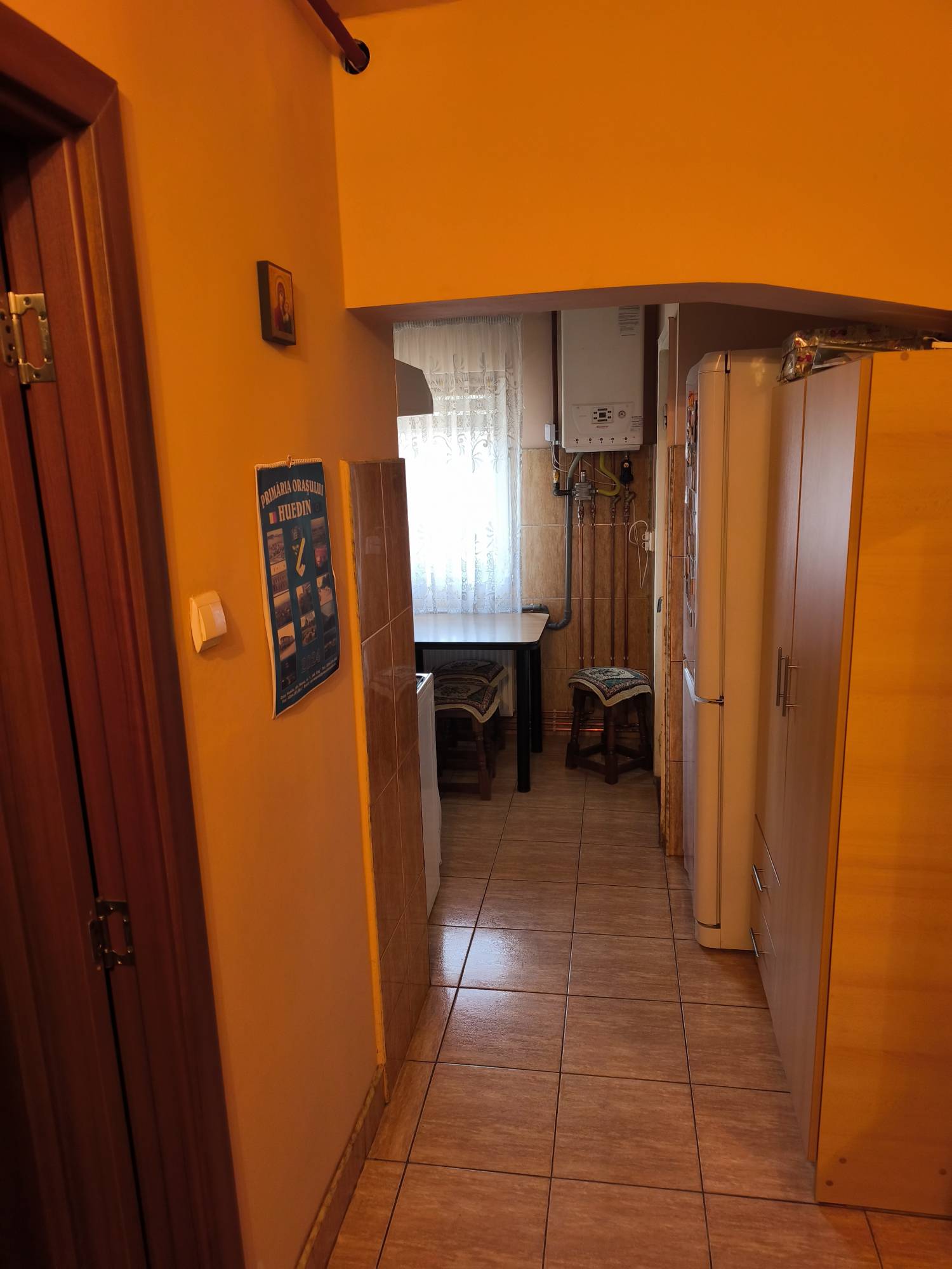 Se vinde apartament ultracentral in Huedin, finisat, in suprafață utilă de 44,45 mp, doua camere, baie, bucătărie, debara, balcon, hol. Apartamentul este situat într-un bloc izolat termic, este dotat cu centrala termica pe gaz, expunere sudică, fiind tot timpul însorit (cheltuieli mici). Este situat la etajul 1 și are acces la terasa exterioara a blocului.