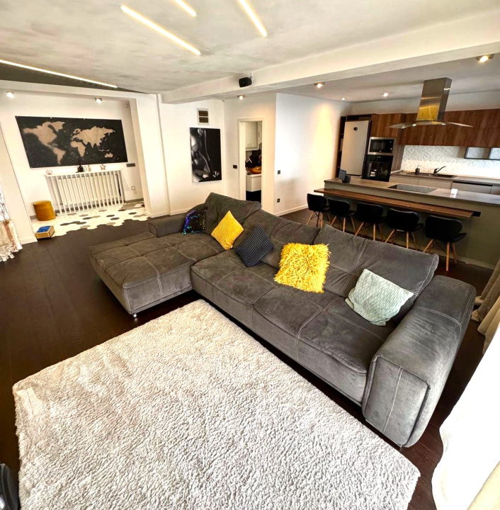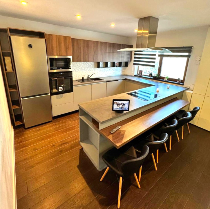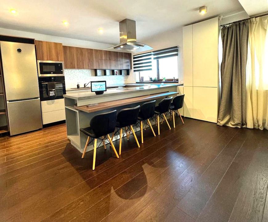 Koncept Imobiliare ofera spre vanzare un apartament premium cu 3 camere, amplasat pe strada Eugen Ionesco, in cartierul Europa, una dintre cele mai apreciate zone rezidentiale din Cluj-Napoca. Proprietatea este situata la etajul 1 al unui imobil exclusivist, cu doar 2 niveluri si 6 apartamente, oferind intimitate, liniste si acces rapid catre principalele artere ale orasului. Apartamentul dispune de o suprafata generoasa de 106,3 mp utili. Compartimentarea actuala include un living spatios cu zona de dining si acces la balcon, bucatarie complet echipata, doua bai moderne si doua dormitoare luminoase. In plus, apartamentul beneficiaza de o terasa de 17,4 mp si acces la o curte comuna inchisa. Exista un loc de parcare subteran cu priza pentru incarcare masini electrice, iar un al doilea loc poate fi inchiriat. Finisajele si dotarile sunt la cele mai inalte standarde. Apartamentul beneficiaza de izolatie fonica suplimentara (tavan, pardoseala, pereti laterali), parchet triplu stratificat din stejar, sistem de incalzire Netatmo pe calorifere si control inteligent al climatului prin aer conditionat smart. Iluminatul este realizat integral cu sistem Philips Hue, completat de senzori de prezenta si panou electric suplimentar pentru siguranta. Bucataria este dotata cu insula multifunctionala cu masa pivotanta si hota centrala cu evacuare exterioara. Apartamentul se vinde complet mobilat si utilat cu mobilier MDF de inalta calitate realizat la comanda, si electrocasnice de ultima generatie, achizitionate in 2025. Baia principala, spatioasa si luminoasa, este dotata cu echipamente Grohe, Kludi si Geberit, incalzire in pardoseala, fereastra, doua chiuvete si walk-in shower. Recomandat atat ca locuinta de familie, cat si pentru locuinta de protocol sau investitie destinata inchirierii premium, acest apartament imbina designul rafinat cu functionalitatea si confortul modern. Actele au fost verificate si validate de agentie. Pentru informatii complete, programarea unei vizionari sau pentru a afla oferta noastra completa va stam la dispozitie telefonic, prin e-mail sau la sediul agentiei noastre, pe str. Aviator Badescu, nr. 19, Cluj-Napoca.