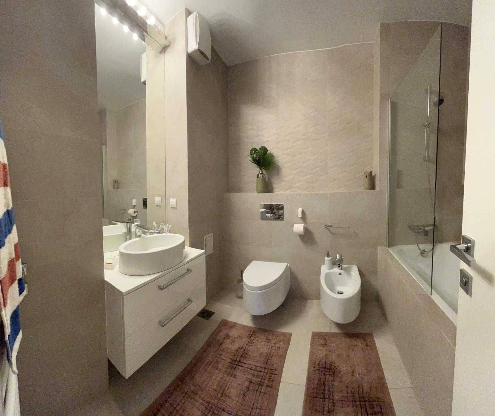 Apartament nou cu 3 camere decomandate, 90mp, superfinisat, mobilat si utilat, cu garaj sub bloc, 2 bai si 2 balcoane, langa Iulius Mall
