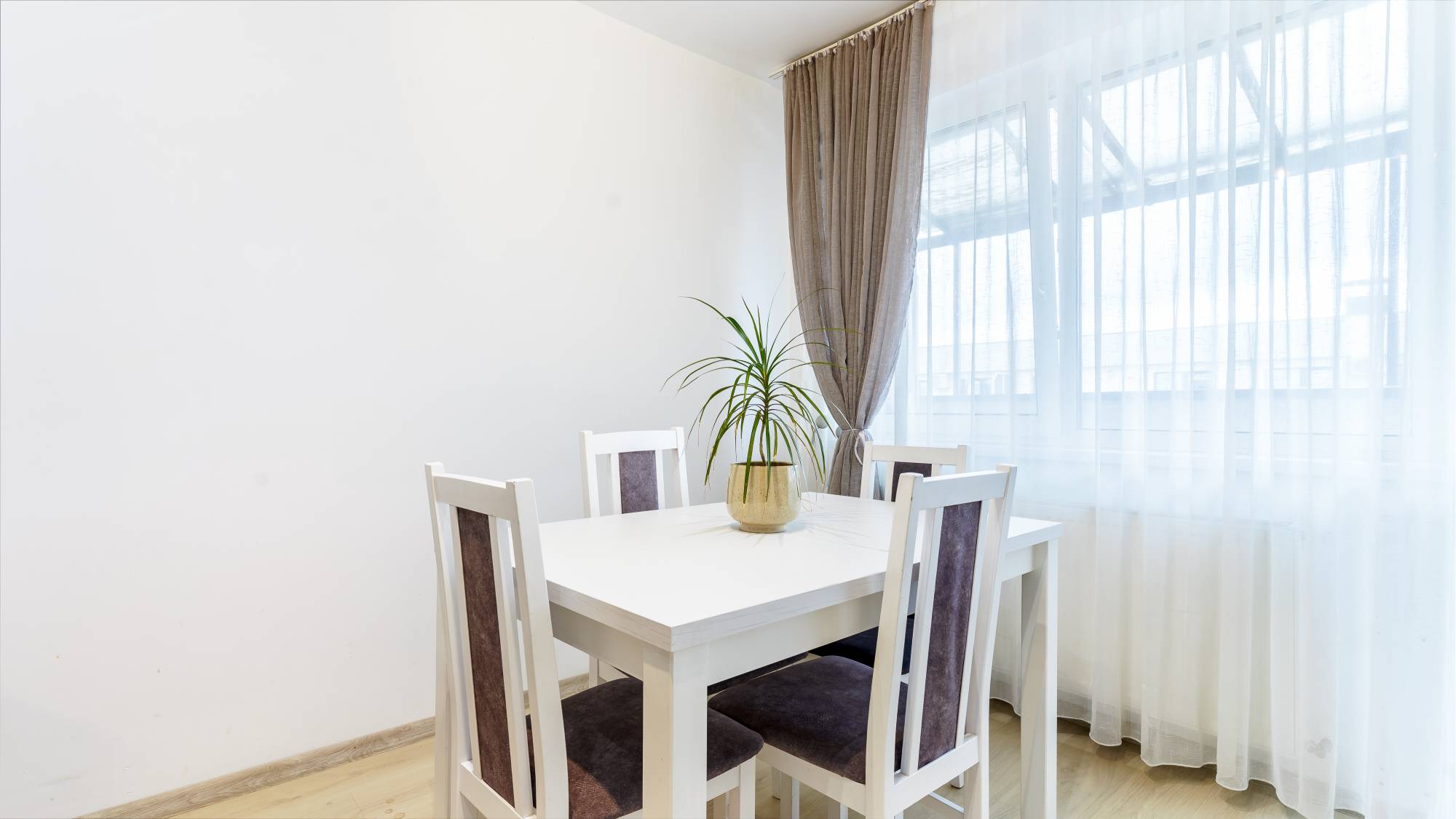 Suprafața utilă este de 57,39 mp, la care se adaugă o terasă de 9,31 mp. Apartamentul este amplasat la etaj retras, etajul 7, într-un ansamblu rezidențial cu spații verzi și loc de joacă pentru copii.