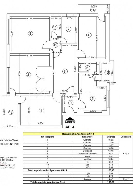 Va oferim spre vanzare un apartament cu 4 camere, situat la etajul 2 din 3, intr-o cladire cu doar 6 apartamente, inalimtea acestuia este de 3.20 metri. Apartamentul este decomandat si amplasat intr-o zona apreciata a orasului. Suprafata utila este de 120 mp, la care se adauga trei balcoane cu o suprafata totala de 15 mp.