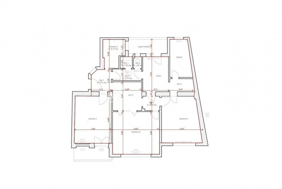 Apartamentul este decomandat, avand o suprafata utila de aproximativ 120 mp, la care se adauga un balcon spre strada Eroilor si o logie spre curtea interioara.