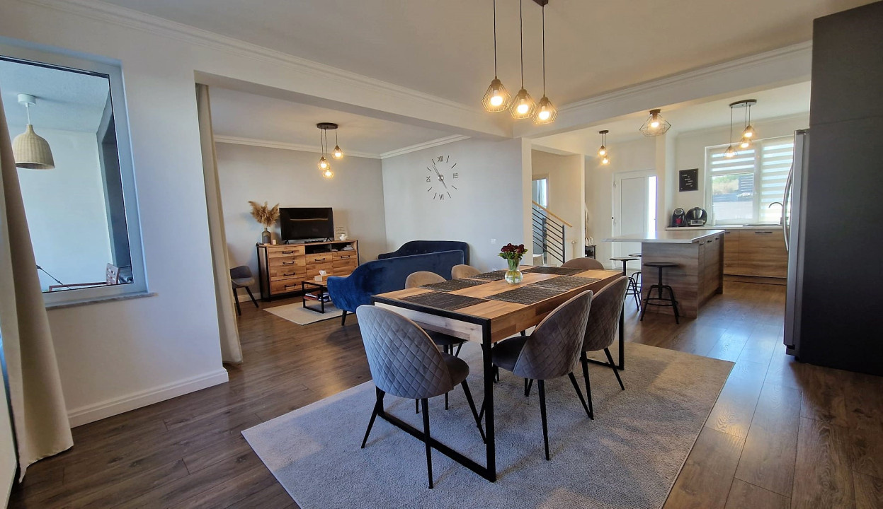 Koncept Imobiliare va ofera spre inchiriere un duplex situat pe strada Voronet, in Cartierul Tineretului, o zona rezidentiala apreciata pentru atmosfera linistita si accesul facil catre principalele puncte de interes ale orasului. Proprietatea beneficiaza de o pozitionare echilibrata, intr-un cadru placut, ideal pentru cei care isi doresc confortul unei locuinte spatioase, cu gradina proprie, dar in acelasi timp aproape de facilitatile urbane. Orientarea est-vest asigura lumina naturala pe tot parcursul zilei, contribuind la un ambient cald si primitor. Imobilul dispune de o suprafata utila de 127 mp si este amplasat pe un teren de aproximativ 300 mp, oferind atat spatiu interior generos, cat si o curte amenajata, potrivita pentru relaxare sau petrecerea timpului liber in aer liber. Compartimentarea este practica si armonioasa. La parter se regasesc holul de acces, o baie, living spatios cu iesire directa pe terasa, bucatarie complet echipata si zona de dining. Etajul este dedicat zonei de odihna si include trei dormitoare, dintre care unul este dormitor matrimonial cu baie proprie, o a doua baie si un balcon. Se inchiriaza complet mobilata si utilata, fiind amenajata cu materiale moderne si aparatura de ultima generatie, in plus, proprietatea dispune de doua locuri de parcare. Unul dintre principalele puncte forte ale acestei proprietati este curtea generoasa cu gradina frumos amenajata, care completeaza perfect spatiul interior si ofera un cadru ideal pentru relaxare. Proprietatea este recomandata celor care cauta o locuinta moderna in Cartierul Tineretului, cu gradina proprie si acces rapid catre facilitatile zonei, oferind echilibrul ideal intre intimitate, spatiu si accesibilitate. Pentru informatii suplimentare, programarea unei vizionari sau pentru a afla oferta noastra completa va stam la dispozitie telefonic, prin e-mail sau la sediul agentiei noastre, pe str. Aviator Badescu, nr. 19, Cluj-Napoca.