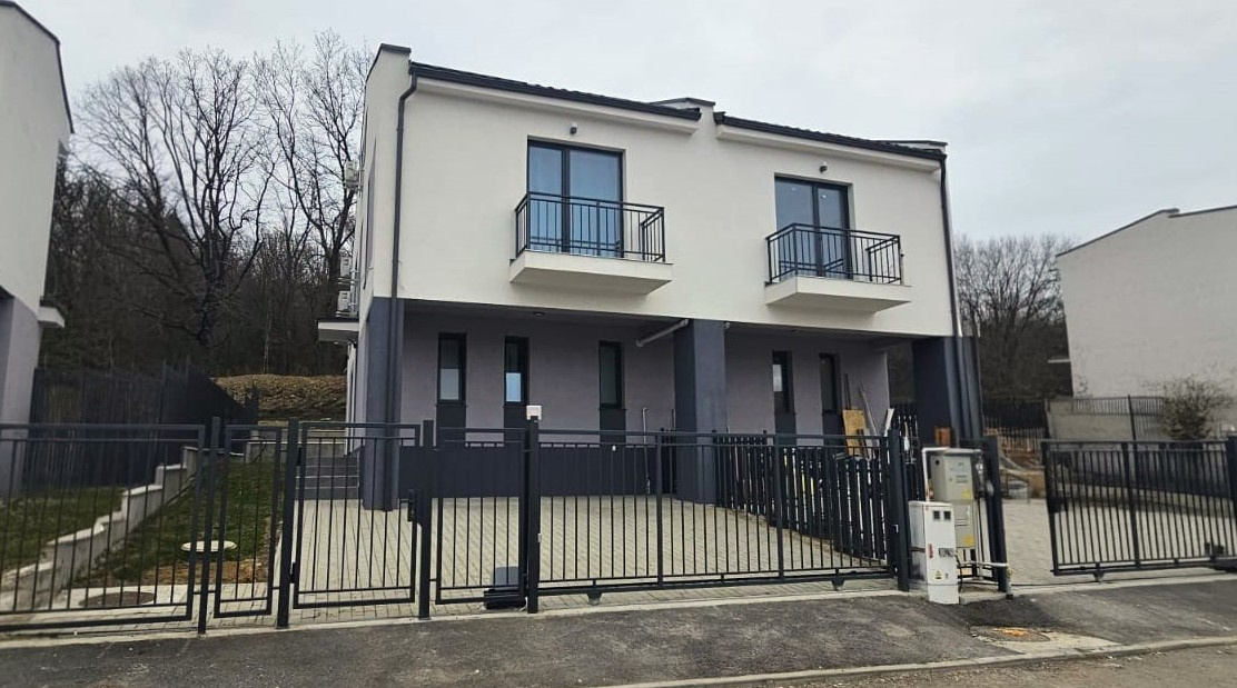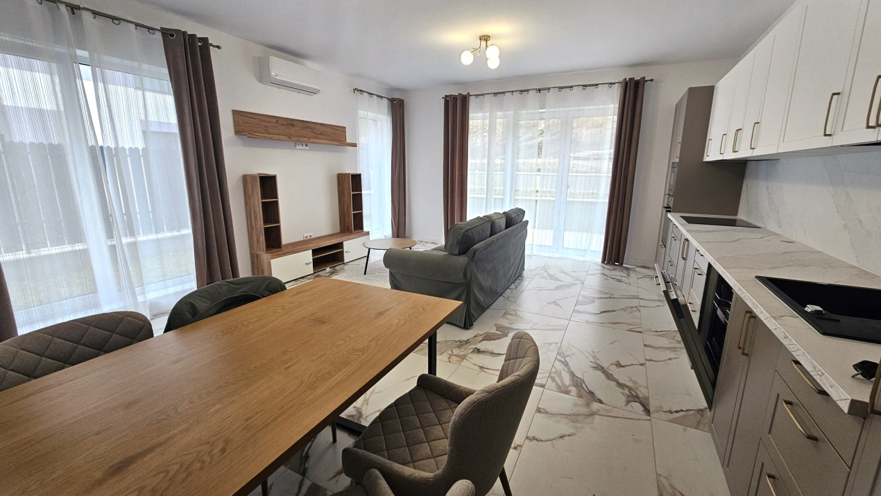 Koncept Imobiliare va ofera spre inchiriere un duplex modern, situat in cartierul Iris, strada Oasului, intr-o zona exclusiv de case noi, linistita si aerisita, la marginea padurii, cu acces facil catre statii de transport si puncte comerciale. Proprietatea beneficiaza de lumina naturala generoasa pe parcursul dupa-amiezii si serii, oferind un ambient placut si relaxant. Avand suprafata utila de 142 mp, din care 35 mp reprezinta mansarda si este compartimentata eficient astfel: la parter regasim un living open-space cu zona de dining si bucataria complet mobilata si utilata(plita cu inductie, cuptor electric, cuptor cu microunde, frigider si masina de spalat vase), baie si terasa cu acces din living; la etaj sunt 3 dormitoare, dintre care unul dispune de dressing, si 2 bai complet echipate (ambele cu geam pentru ventilatie naturala); mansarda este open-space, ideala pentru birou, zona de relaxare sau hobby. Proprietatea dispune de o curte proprie de aproximativ 160 mp, amenajata cu gazon si zona pavata pentru terasa si parcare, precum si 2 locuri de parcare. Finisajele sunt moderne, cu accent pe confort si functionalitate. Este dotata cu centrala proprie si incalzire in pardoseala, cu termostate individuale in fiecare incapere, aer conditionat in toate camerele. Unul dintre principalele avantaje ale proprietatii este pozitionarea la marginea padurii, oferind un echilibru ideal intre accesibilitate urbana si linistea naturii, alaturi de faptul ca este la prima inchiriere totul fiind nou, mansarda functionala si curtea privata. De asemenea, zona rezidentiala nou dezvoltata asigura un mediu sigur si aerisit, potrivit unui stil de viata modern. Proprietatea este ideala atat pentru o familie sau un cuplu care isi doreste confort, spatiu si liniste, cat si pentru firme cu activitate de birou, precum IT, consultanta sau servicii, datorita compartimentarii si spatiului suplimentar oferit de mansarda. Pentru informatii suplimentare, programarea unei vizionari sau pentru a afla oferta noastra completa va stam la dispozitie telefonic, prin e-mail sau la sediul agentiei noastre, pe str. Aviator Badescu, nr. 19, Cluj-Napoca.