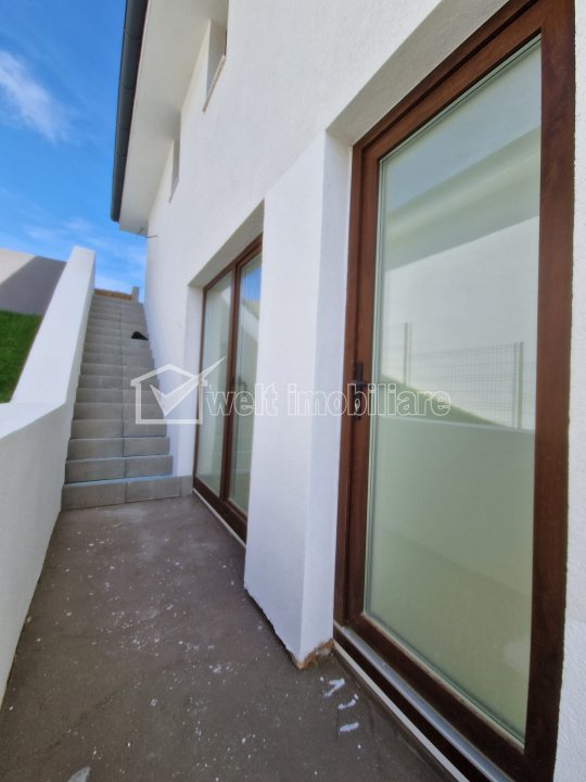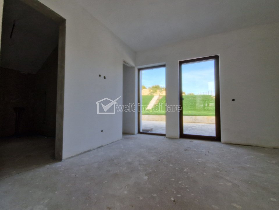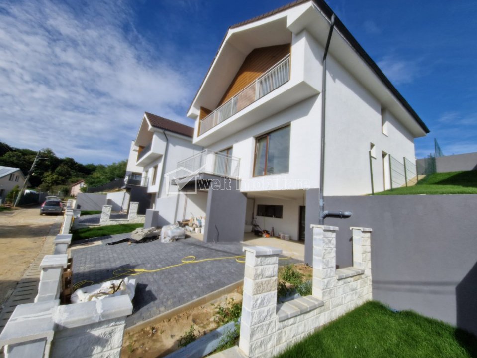 Se ofera spre vanzare ultima unitate dintr-un ansamblu de 3 case identice, fiecare construita pe un teren de 1000 mp, cu curte amenajata si teren in spate terasat pe 3 niveluri (860 mp).