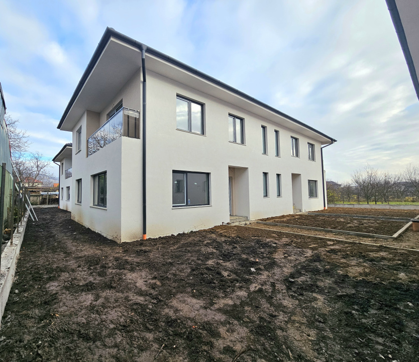Koncept Imobiliare va ofera spre vanzare un duplex modern situat pe strada Avram Iancu din Floresti, intr-un ansamblu rezidential nou, familial si bine organizat, retras de la strada principala, dar cu acces rapid spre Cluj-Napoca. Proprietatea se afla intr-o zona de case si duplexuri, pe un drum privat cu acces controlat, avand orientare vest-sud, ceea ce aduce un plus de lumina naturala in living si in zona de zi. Imobilul dispune de o suprafață utila de 120 mp, este semifinisat interior si beneficiaza de o compartimentare functionala: la parter regasim holul de acces, living generos cu deschidere spre curtea individuala, bucatarie separata, baie si spatiu de depozitare, in timp ce etajul cuprinde trei dormitoare luminoase, dintre care unul pregatit pentru dresing, o baie si un balcon de aproximativ 3 mp. Accesul catre podul circulabil ofera un spatiu suplimentar pentru depozitare, un avantaj rar intalnit la proprietatile din zona. Exteriorul este complet finalizat, cu fatada decorativa, alei asfaltate si iluminat exterior, iar curtea privata va fi predata complet amenajata si gazonata. Constructia este noua, moderna si solida, cu perete dublu si izolatie fonica intre unitati, acoperis din tigla ceramica, tamplarie PVC tripan, izolatie exterioara de 10 cm si sistem complet de incalzire in pardoseala pe ambele niveluri. Proprietatea dispune de toate utilitatile bransate, instalatii interioare trase la pozitie si centrala termica proprie, oferind flexibilitate pentru personalizarea finisajelor in functie de preferinte. Ansamblul beneficiaza de drum de acces privat, poarta automata si doua locuri de parcare incluse in pret, parte din infrastructura comuna asfaltata. Caracterul retras al ansamblului, traficul redus, proximitatea fata de scoli, magazine, institutii publice, statia de autobus si accesul direct spre strada Avram Iancu transforma acest duplex intr-o alegere excelenta pentru o familie care isi doreste confort, siguranta si accesibilitate. Proprietatea este potrivita atat pentru locuit permanent, cat si pentru o investitie stabila intr-o zona rezidentiala in continua dezvoltare. Pentru informatii suplimentare, programarea unei vizionari sau pentru a afla oferta noastra completa va stam la dispozitie telefonic, prin e-mail sau la sediul agentiei noastre, pe str. Aviator Badescu, nr. 19, Cluj-Napoca.