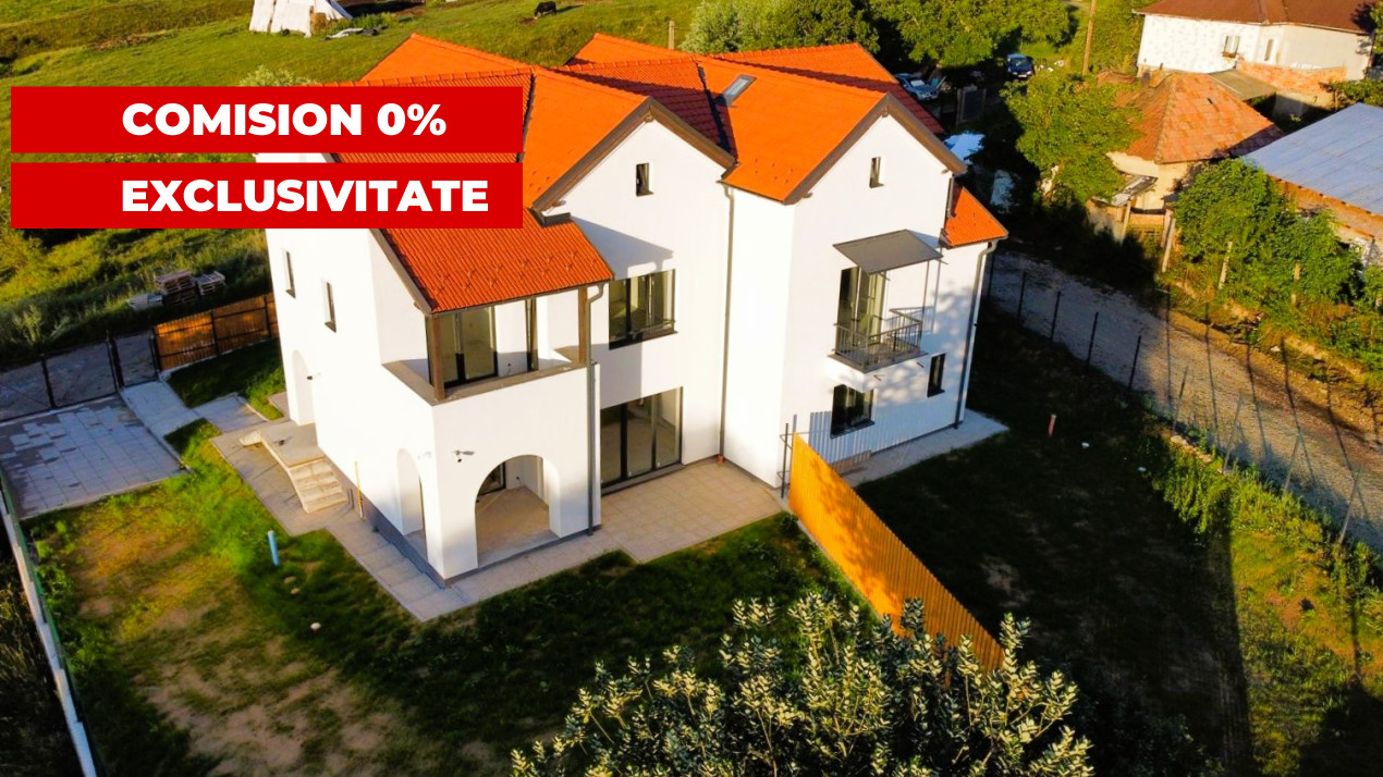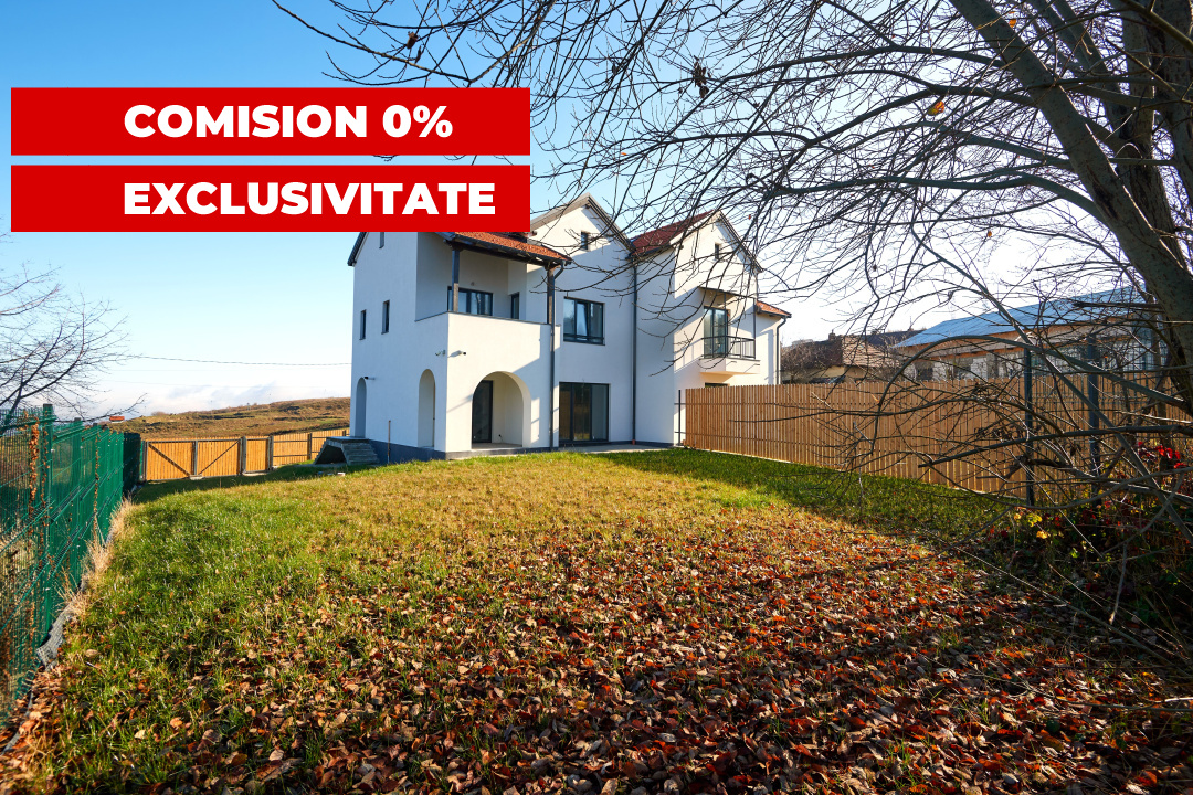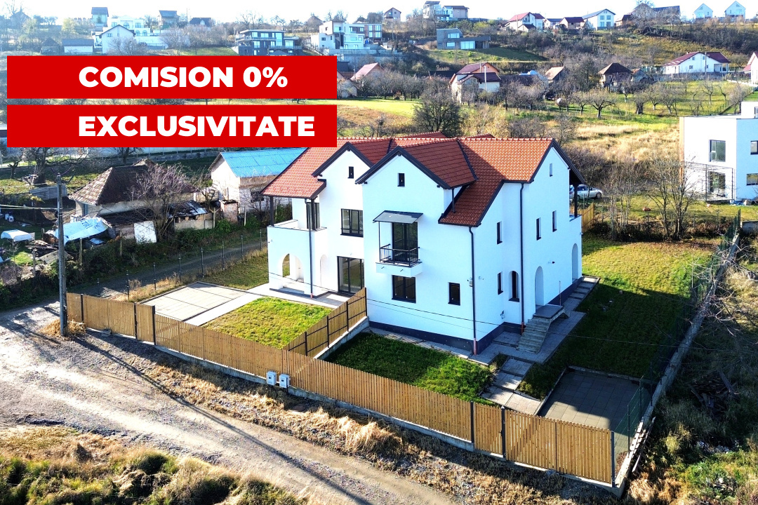 Koncept Imobiliare va ofera spre vanzare o casa tip duplex situata in Feleacu, foarte aproape de partia de schi, pe ultima parcela dintr-o zona de case noi premium. Proprietatea beneficiaza de o orientare est sud vest, astfel incat livingul si terasa se bucura de lumina naturala pe tot parcursul zilei si de o vedere panoramica neobstructionata spre orasul Cluj-Napoca si spre partia de schi. Fiecare unitate locativa dispune de un teren generos de aproximativ 405 de metri patrati, iar casa are o suprafata utila de aproximativ 180 metri patrati, care cuprinde si un pod de aproximativ 60 de metri patrati, usor amenajabil. La parter regasim un living spatios cu bucatarie open space si iesire directa pe terasa si in curte, o baie, camera tehnica, casa scarii si hol. Etajul este gandit pentru zona de noapte, cu dormitor matrimonial cu baie proprie si balcon cu panorama spre oras, doua dormitoare luminoase, o baie, terasa, casa scarii si hol. Podul tip open space, cu ferestre de tip velux, poate fi compartimentat in doua dormitoare cu baie si dressing sau poate deveni un spatiu generos pentru birou, loc de joaca ori biblioteca. Casa se preda la interior la stadiul de semifinisat, cu sapa egalizatoare, pereti cu doua maini de glet, toate instalatiile trase pe pozitii si usa de intrare antiefractie. Sistemul de incalzire este asigurat de o centrala termica proprie marca Viessmann, cu incalzire in pardoseala. Tamplaria este Rehau Synego, instalatiile de apa si de canalizare sunt antifonate iar exteriorul este finalizat complet, in stil neoromanesc contemporan, cu termosistem, tencuiala decorativa, glafuri si trotuare perimetrale, acoperis din tigla si detalii executate atent, cu materiale de foarte buna calitate. Curtea este imprejmuita, accesul se face prin poarta automatizata cu telecomanda, exista doua locuri de parcare pavate pentru fiecare unitate, iar zona din spate este amenajata cu gazon si spatiu liber pentru viitoarea terasa, loc de joaca sau zona de relaxare. Proprietatea dispune de gaz, energie electrica, apa de la retea, fibra optica pentru internet, micro statie de epurare pentru cele doua unitati locative, sistem de alarma, supraveghere video si retea pregatita pentru montarea de panouri fotovoltaice. Accesul se face pe doua drumuri, cu asfalt pana in imediata apropiere, ultimul tronson de aproximativ 150 de metri fiind neasfaltat, iar la drumul asfaltat exista statie pentru transportul in comun. Aceasta casa tip duplex din Feleacu este o alegere potrivita pentru familii cu copii, pentru cei care lucreaza de acasa sau pentru iubitorii de natura si sport, care isi doresc liniste, aer curat, intimitate si o panorama spectaculoasa spre Cluj-Napoca, pastrand totodata accesul facil catre oras. Proprietatea este finalizata, are carte funciara, se poate preda imediat, iar in pretul afisat este inclusa si taxa pe valoare adaugata, vanzatorul fiind persoana juridica. Pentru informatii suplimentare, programarea unei vizionari sau pentru a afla oferta noastra completa va stam la dispozitie telefonic, prin e-mail sau la sediul agentiei noastre, pe str. Aviator Badescu, nr. 19, Cluj-Napoca.