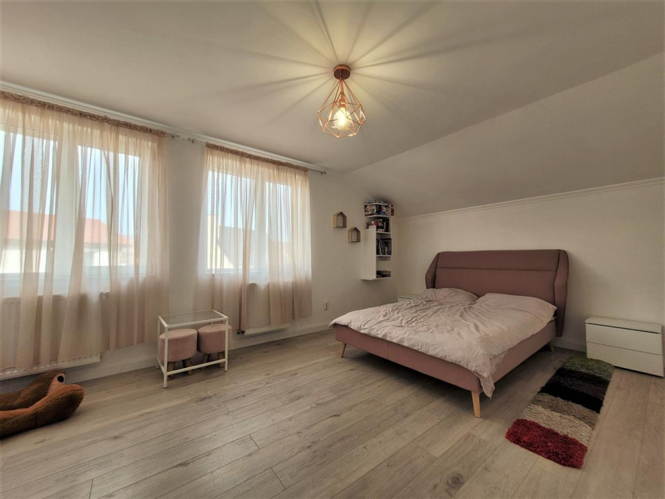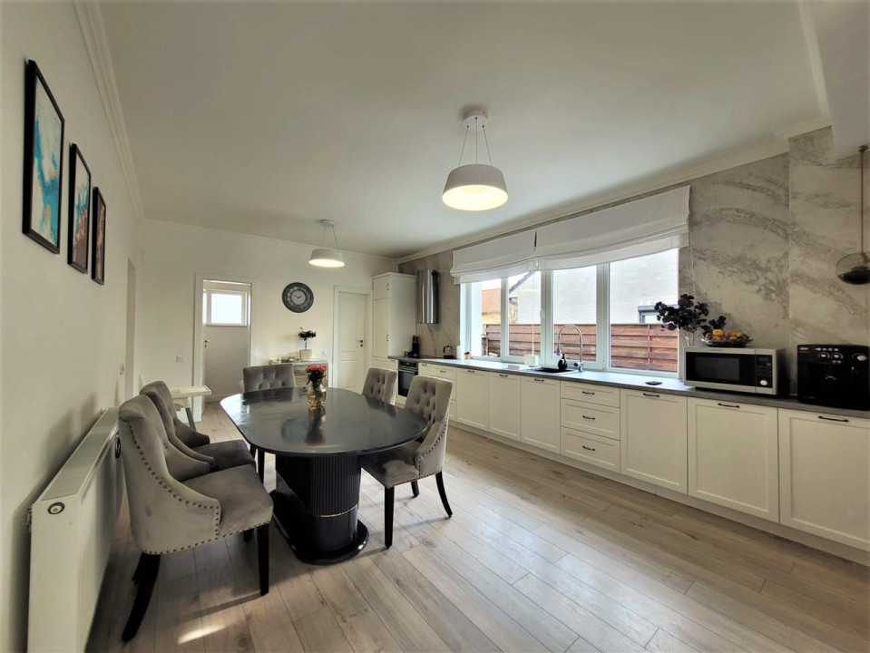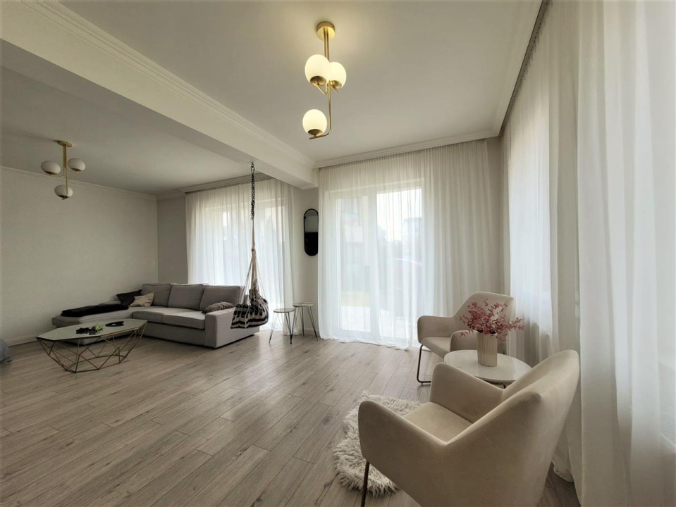 Koncept Imobiliare va ofera spre vanzare o casa individuala ultrafinisata in cartierul Terra Floresti - primul cartier rezidential cu acces controlat de acest fel, care beneficiaza de linistea si organizarea unui ansamblu privat, precum si de siguranta copiilor care au parte de strazi asfaltate si de parc de joaca si relaxare. Stilul de viata oferit in cartier este incomparabil cu ceea ce se poate gasi in orice alta locatie din zona Clujului. Utilitatile si functionarea lor la parametri corecti, accesul facil, iluminatul public, solutiile tehnice de ultima generatie fac din cartierul Terra Floresti o locatie de ravnit pentru cei ce doresc un stil de viata confortabil. Casa individuala, in suprafata utila de 191 mp, este amplasata pe un teren de 531 mp. Aceasta a fost construita in 2007 si complet renovata in 2021 si este compartimentata dupa cum urmeaza: la parter o bucatarie generoasa, living cu iesire pe terasa, baie, camera tehnica si accesul in garaj, iar la etaj: 2 dormitoare matrimoniale cu baie si dressing propriu, inca un dormitor si inca o baie. Casa se vinde complet mobilata si utilata modern, cu materiale si electrocasnice de foarte buna calitate. Putem aminti semineul functional, cu boiler pentru recuperarea caldurii, masina de spalat vase, masina de spalat rufe, combina frigorifica, plita si cuptor incorporabil, scara interioară din lemn masiv, mobilier din MDF, etc. Actele au fost verificate si validate de catre agentie! Pentru detalii suplimentare, programarea unei vizionari sau pentru a va prezenta oferta noastra completa, nu ezitati sa ne contactati telefonic, prin email sau direct la sediul agentiei noastre pe pe str. Aviator Badescu nr. 19, Cluj-Napoca.