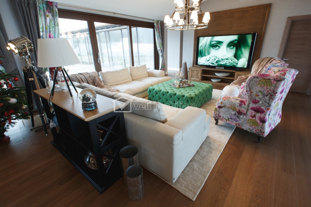 Se vinde complet mobilată și utilată, cu electrocasnice și echipamente premium (Miele, Bang & Olufsen, Villeroy & Boch).