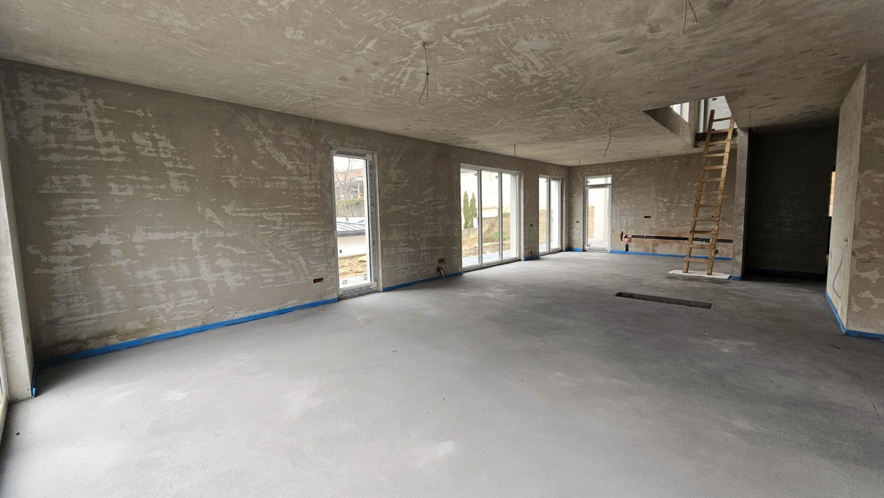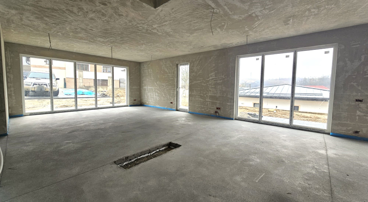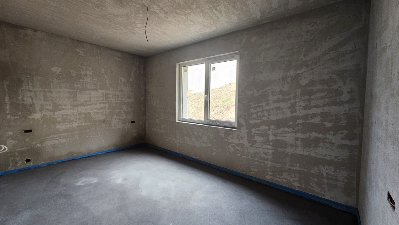 Koncept Imobiliare va ofera spre vanzare o casa individuala situata in Feleacu, intr-o zona retrasa fata de strada principala, caracterizata prin liniste, intimitate si acces facil catre Cluj-Napoca. Proprietatea beneficiaza de o pozitionare excelenta si o panorama frumoasa asupra dealurilor din imprejurimi, fiind amplasata intr-un cadru rezidential nou, cu vecinatati formate din case noi si moderne. Imobilul este dispus pe regim de inaltime P+M si are o suprafata utila de 202 mp, fiind amplasat pe un teren de 800 mp. Compartimentarea este gandita eficient: la parter regasim un living spatios cu bucatarie si loc de luat masa open-space, cu posibilitate de delimitare, un dormitor cu baie proprie si dressing, ideal pentru oaspeti sau pentru un membru al familiei, un birou(sau camera suplimentara), o baie si o camera tehnica. La etaj se afla zona de noapte, compusa din 3 dormitoare, fiecare cu baie proprie (dormitorul matrimonial beneficiaza si de un dressing), si o terasa de 52 mp, perfecta pentru relaxare. Casa se vinde finisata la exterior si semifinisata la interior, oferind libertate totala de personalizare. Interiorul este pregatit cu pereti tencuiti si gletuiti, sape turnate si instalatii electrice si termice trase pe pozitie. Constructia este realizata din caramida, iar confortul termic este asigurat de centrala termica proprie si incalzire prin pardoseala. Exteriorul este complet amenajat, cu izolatie, tencuiala decorativa si piatra naturala, pavaj pentru 2-3 masini, gazon si sistem de irigare automatizat. Casa se remarca prin suprafata generoasa, arhitectura moderna cu suprafete vitrate ample, calitatea constructiei si amplasamentul retras, dar usor accesibil. Este ideala pentru o familie care isi doreste confort, spatiu si liniste, dar si pentru cei care cauta o investitie intr-o zona in plina dezvoltare, cu potential ridicat de apreciere.