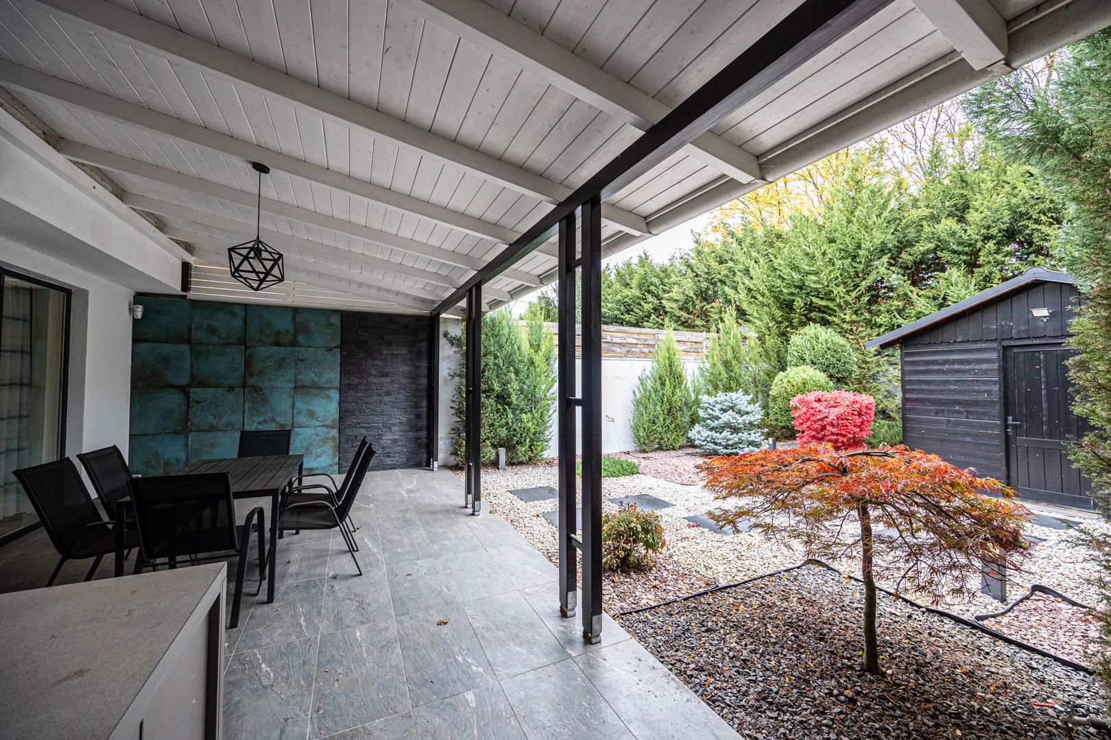 Terasă acoperită și grădină japoneză amenajată – perfectă pentru relaxare