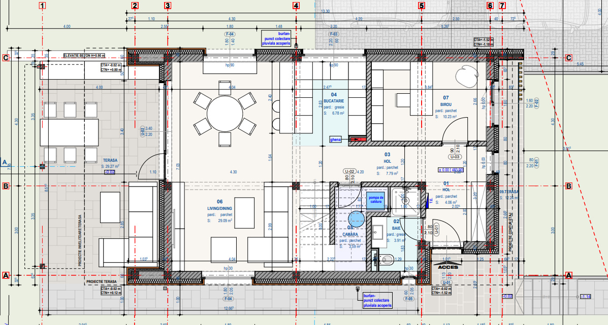 Koncept Imobiliare va ofera spre vanzare o casa individuala situata in Chinteni, pe strada Ady Endre, intr-o zona de case noi, linistita si cu acces facil catre Cluj-Napoca. Proprietatea beneficiaza de orientare mixta si vizibilitate panoramica spre sat si dealuri, oferind un cadru natural placut si un plus de luminozitate pe tot parcursul zilei. Imobilul este dispus pe regim de inaltime P+E+pod, cu o suprafa ta utila de 136 mp si un teren generos de 700 mp, dintre care aproximativ 609 mp reprezinta suprafata libera, mai mare decat media proprietatilor individuale din zona. La parter gasim un hol de acces bine proportionat, un living spatios cu bucatarie open-space, o baie finisata, un spatiu de depozitare sub scari si o camera ce poate functiona ca birou sau dormitor. Parterul este completat de un balcon si o terasa ampla de aproximativ 30 mp, ideala pentru zona de relaxare sau dining exterior. Etajul este compus dintr-un hol, doua dormitoare luminoase, o baie finisata si un dormitor matrimonial cu dressing si acces pe o terasa de 19 mp. Podul dispune de placa de beton, 46 mp utili si o inaltime de aproximativ 2.4 m in punctul central si posibilitatea de a fi izolat si transformat in spatiu de depozitare sau chiar intr-o incapere suplimentara. Casa este finalizata structural, construita din caramida si izolata cu polistiren, acoperita cu tabla si prevazuta cu tamplarie PVC cu 3 foi de sticla. In interior sunt realizate peretii in lavabil alb, sapa autonivelanta, baile finisate si sistemul de incalzire prin pardoseala instalat pe ambele niveluri. Utilitatile sunt racordate (apa, curent, canalizare), iar sistemul de incalzire este pregatit pentru pompa de caldura, echipament ce ramane in sarcina noului proprietar. In exterior mai sunt necesare lucrari precum montarea gardului, imprejmuirea terenului, pavajul perimetral, constructia scarilor de acces, amenajarea locurilor de parcare si betonarea terasei din spate. Proprietatea se remarca prin terenul mult peste media zonei, compartimentarea functionala, panorama deschisa si stadiul partial finisat, care permite noului proprietar sa isi personalizeze confortul interior si exterior. Este o alegere potrivita pentru familii care cauta spatiu, lumina si liniste, dar si pentru cei care isi doresc o locuinta aproape de oras, cu investitie rezonabila in finisajele finale. Pentru informatii suplimentare, programarea unei vizionari sau pentru a afla oferta noastra completa va stam la dispozitie telefonic, prin e-mail sau la sediul agentiei noastre, pe str. Aviator Badescu, nr. 19, Cluj-Napoca.