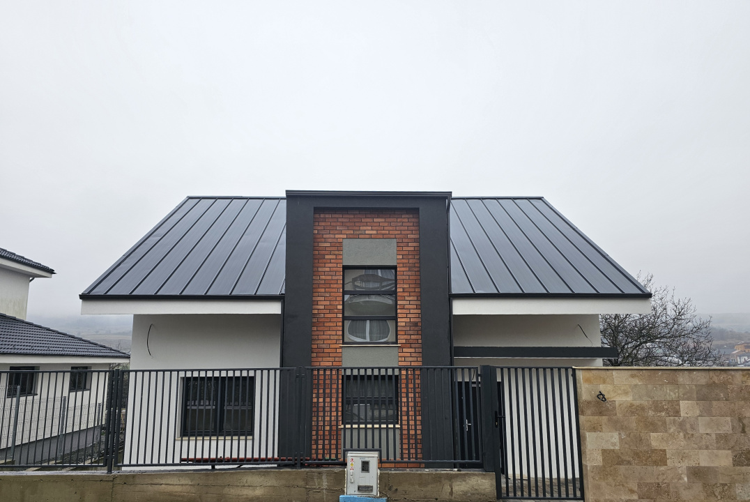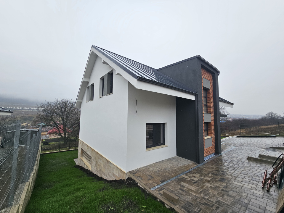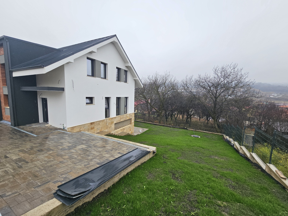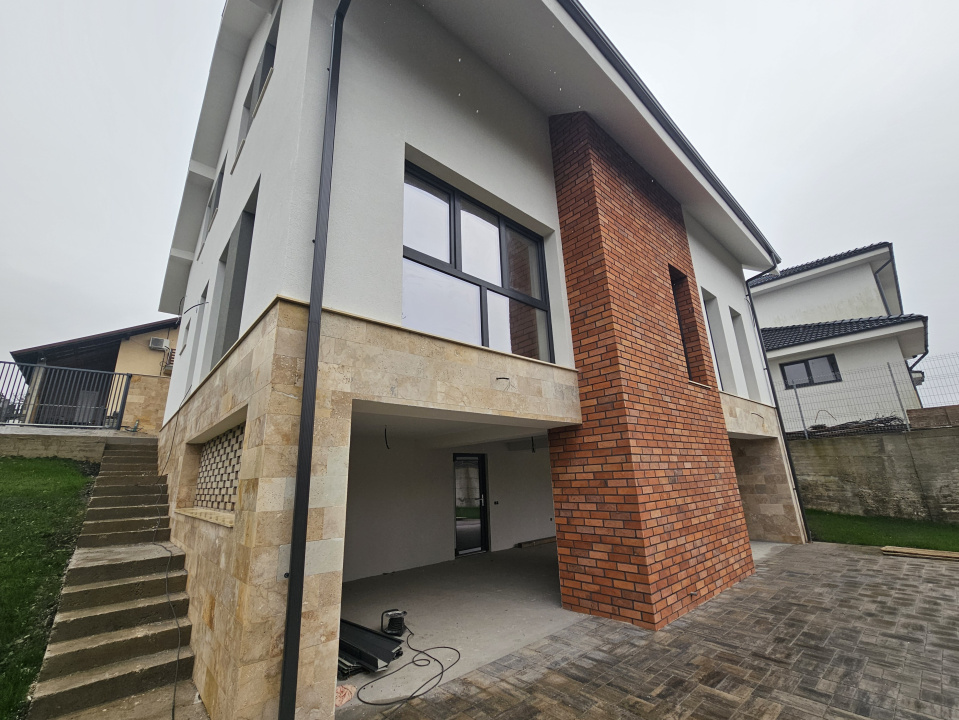 Koncept Imobiliare va ofera spre vanzare o casa individuala situata in Chinteni, intr-o zona linistita de case noi, cu orientare Sud-Est si acces facil catre Cluj-Napoca. Proprietatea se afla la doar cateva minute de statia de autobuz si magazinul Profi, pe o strada retrasa, cu trafic redus, oferind intimitate si luminozitate pe tot parcursul zilei. Imobilul este dispus pe demisol, parter si etaj, avand o suprafata utila de 215 mp si un teren de 500 mp, cu curte amenajata cu gazon, acces pietonal si auto pavat, prevazuta cu poarta automatizata la intrare pentru confort si siguranta sporita. Casa se preda semifinisata, cu instalatii electrice si sanitare trase pe pozitii, pereti gletuiti si tencuiti, sapa autonivelanta, tamplarie PVC tripan si termoizolatie realizata cu caramida de 30 cm, polistiren de 15 cm si spuma cu celula inchisa pentru acoperis. Exteriorul este finisat cu caramida aparenta de calitate, travertin si pervaze din granit, iar acoperisul este realizat cu tabla Bilka. Sistemul de incalzire in pardoseala este montat, centrala urmeaza sa fie instalata de constructor, iar proprietatea beneficiaza de infrastructura pregatita pentru montarea panourilor fotovoltaice. La parter este deja trasa pozitia pentru instalarea unui semineu, oferind posibilitatea de a crea o zona de relaxare calda si confortabila. Compartimentarea este gandita pentru functionalitate si confortul unei familii. Parterul include un hol generos, living cu bucatarie open-space, dormitor si baie, completate de posibilitatea amplasarii semineului in zona de zi. Etajul pune la dispozitie trei dormitoare luminoase, o baie, o spalatorie si un dressing. La demisol se afla un spatiu open-space versatil, potrivit pentru hobby, fitness sau socializare, impreuna cu o terasa acoperita prevazuta cu instalatii pentru bucatarie de vara, zona de grill sau barbeque, precum si pozitie pentru semineu sau vatra exterioara. Cele doua locuri de parcare din curte si posibilitatea de compartimentare a demisolului sau de inchidere a terasei ofera flexibilitate suplimentara. Calitatea constructiei este un element definitoriu, fiind realizata fara compromisuri de spatiu sau materiale, cu accent pe rezistenta, confort termic si posibilitatea personalizarii ulterioare. Datorita amplasarii, luminozitatii, spatiilor generoase si infrastructurii moderne, casa reprezinta o optiune excelenta pentru o familie care isi doreste liniste, acces rapid spre Cluj si o locuinta pe care o poate finisa dupa propriul stil. Pentru informatii suplimentare, programarea unei vizionari sau pentru a afla oferta noastra completa va stam la dispozitie telefonic, prin e-mail sau la sediul agentiei noastre, pe str. Aviator Badescu, nr. 19, Cluj-Napoca.