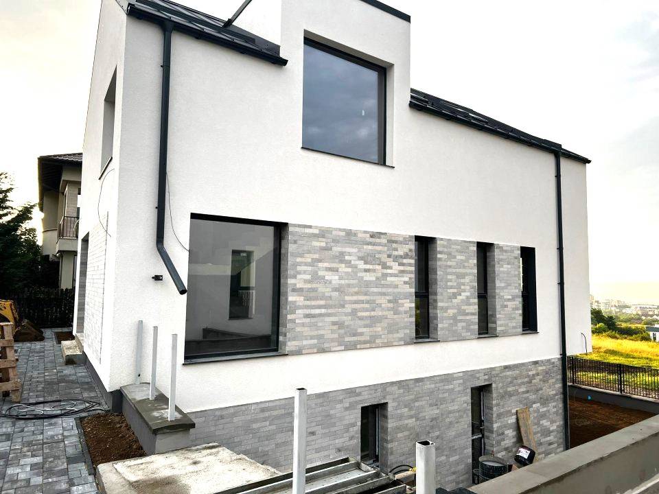 Vindem o casa noua individuala cu 5 camere, 220 mp utili si 400 mp teren, in Buna Ziua. Este dispusa pe 3 niveluri si este alcatuita din 5 camere, 4 bai cu geam, 1 bucatarie si 2 dressinguri. Se vinde la stadiul de semifinisat, conectata la toate utilitatile, cu centrala termica, incalzire in pardoseala, geamuri termopan, izolatie termica exterioara, fiind disponibila prin Mein Haus, ID - 68822