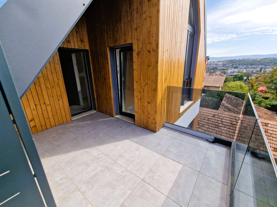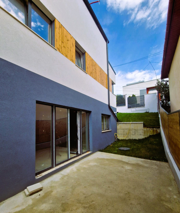 Koncept Imobiliare propune spre vanzare un duplex modern amplasat in zona Dambul Rotund, in proximitatea strazii Partizanilor, intr-un cartier linistit si in plina dezvoltare. Locatia ofera acces facil catre centrul orasului, scoli, supermarketuri si alte facilitati urbane, pastrand in acelasi timp intimitatea si linistea unei zone rezidentiale retrase. Proprietatea, construita pe 3 niveluri, are o suprafata utila de 124,71 mp si teren aferent de 164 mp. Interiorul este compartimentat eficient, oferind 4 camere luminoase, 3 bai, dressing, bucatarie separata, hol si doua terase totalizand 30 mp. Curtea privata de 94 mp completeaza armonios spatiul de locuit, oferind intimitate si posibilitatea amenajarii unei zone de relaxare exterioare. Duplexul se preda in stadiu semifinisat si este echipat cu sistem de incalzire in pardoseala alimentat de centrala termica Viessmann. Constructia de tip nZeb (nearly Zero-Energy Building) integreaza tehnologii verzi: 6 panouri fotovoltaice de 500W fiecare, invertor si sistem solar Sunsystem cu boiler de 200L, asigurand eficienta energetica si cheltuieli minime de exploatare. Orientarea sud-vest confera luminozitate naturala pe tot parcursul zilei. Aceasta proprietate reprezinta o investitie inteligenta pentru o familie care doreste confort, autonomie energetica si un stil de viata sustenabil. Designul modern si compartimentarea functionala o transforma intr-o locuinta echilibrata, adaptata nevoilor contemporane. Pentru informatii complete, programarea unei vizionari sau pentru a afla oferta noastra completa va stam la dispozitie telefonic, prin e-mail sau la sediul agentiei noastre, pe str. Aviator Badescu, nr. 19, Cluj-Napoca.