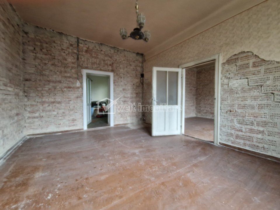 Certificatul de urbanism permite destinatii multiple: locuire colectiva, activitati administrative, financiar-bancare, medicale, culturale, invatamant, turism sau servicii. Imobilul necesita renovare, procesul fiind deja demarat de actualii proprietari (tencuiala indepartata pana la caramida).