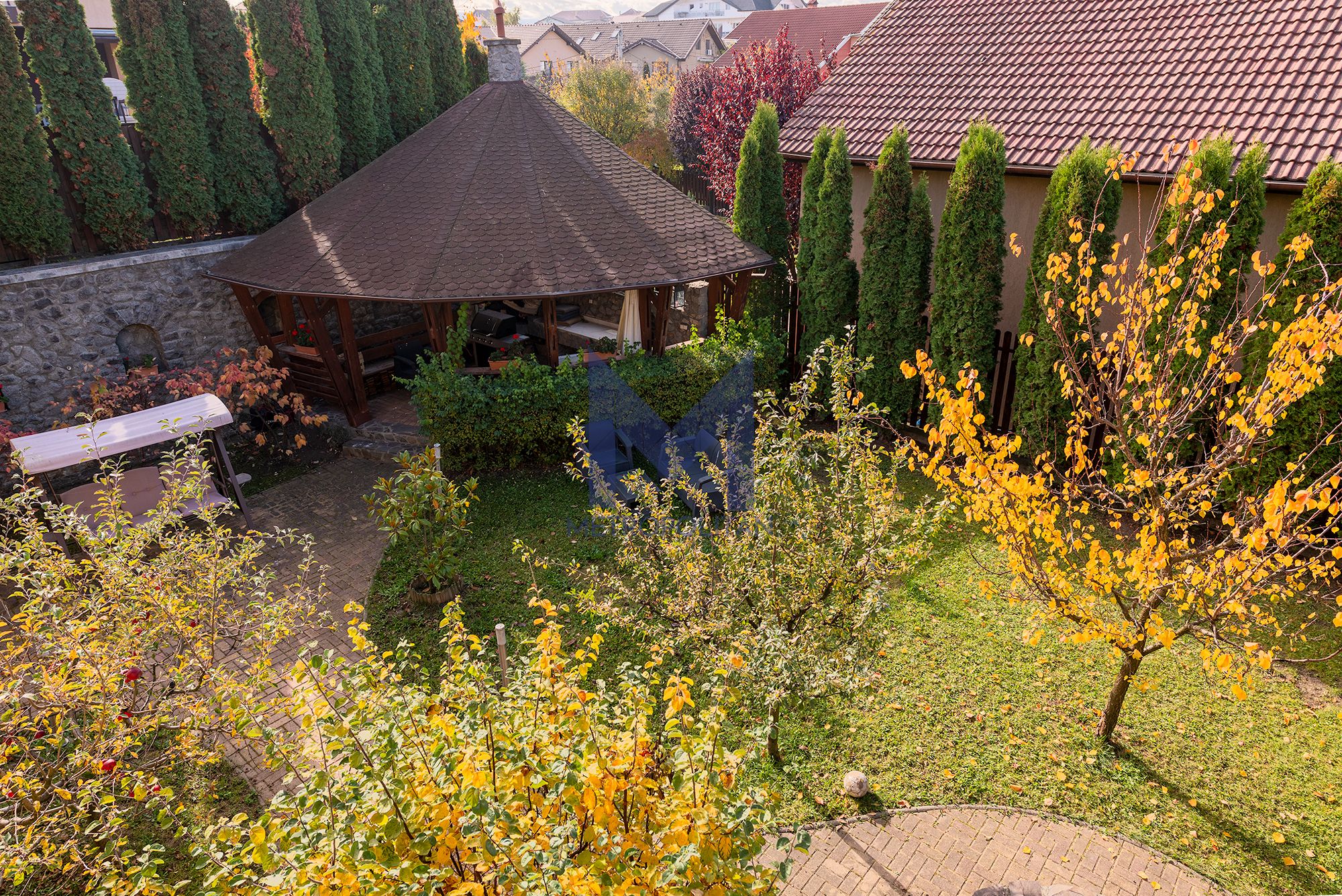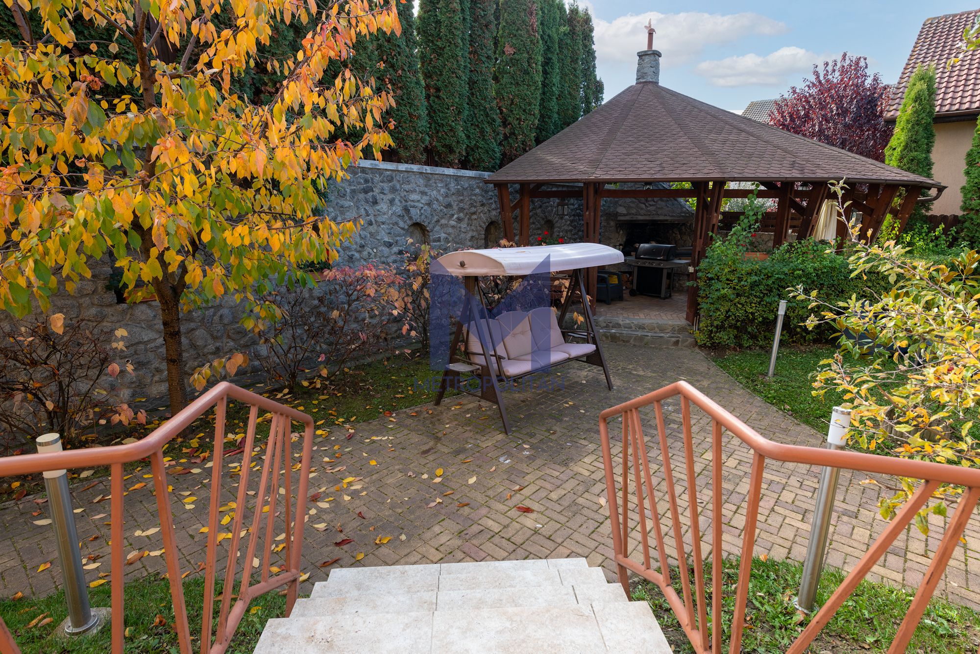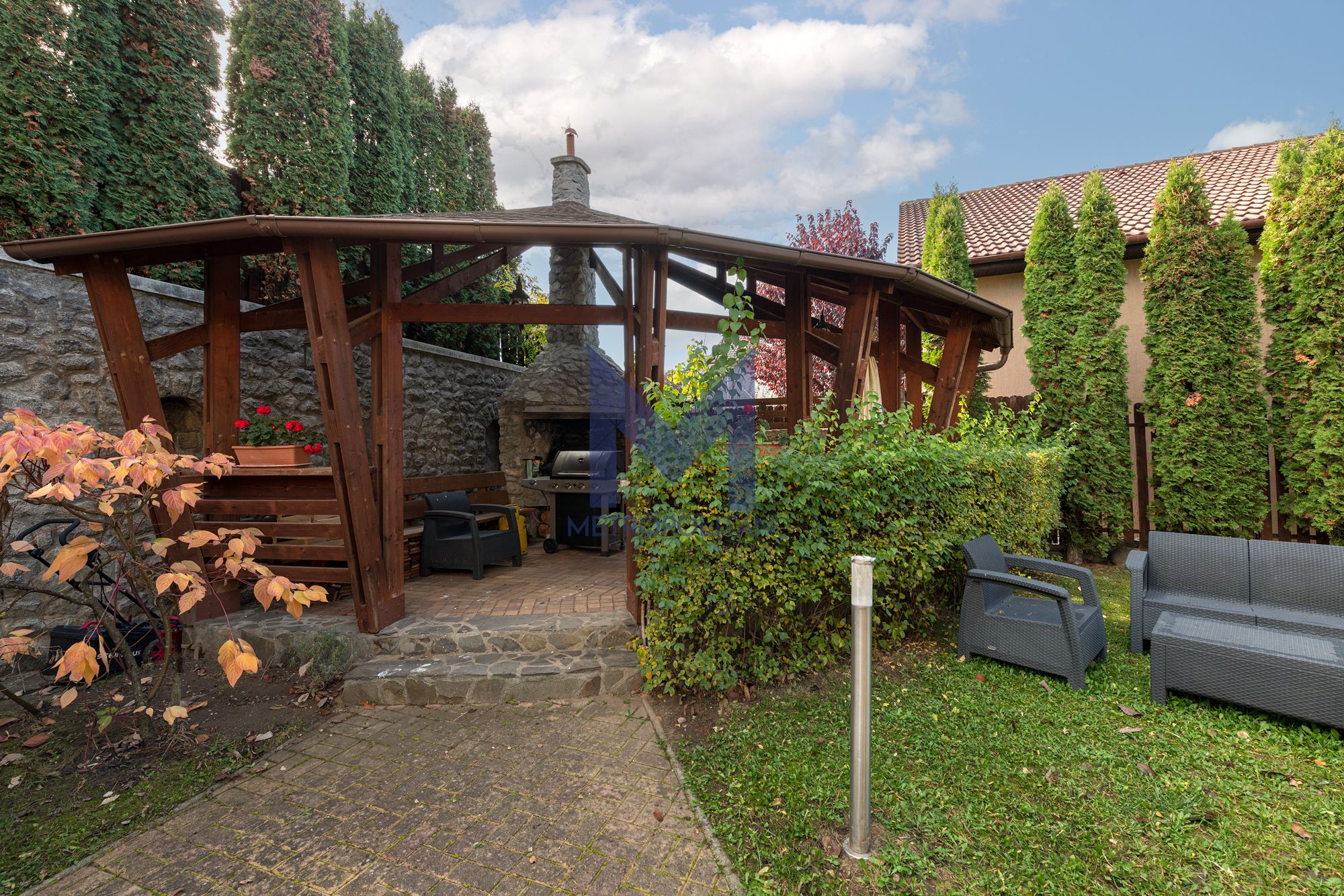 Curtea generoasă este plină de pomi fructiferi de toate soiurile, creând o ambianță intimă și un sentiment de relaxare. Un foișor de 40 mp e refugiul familiei în zilele călduroase de vară.