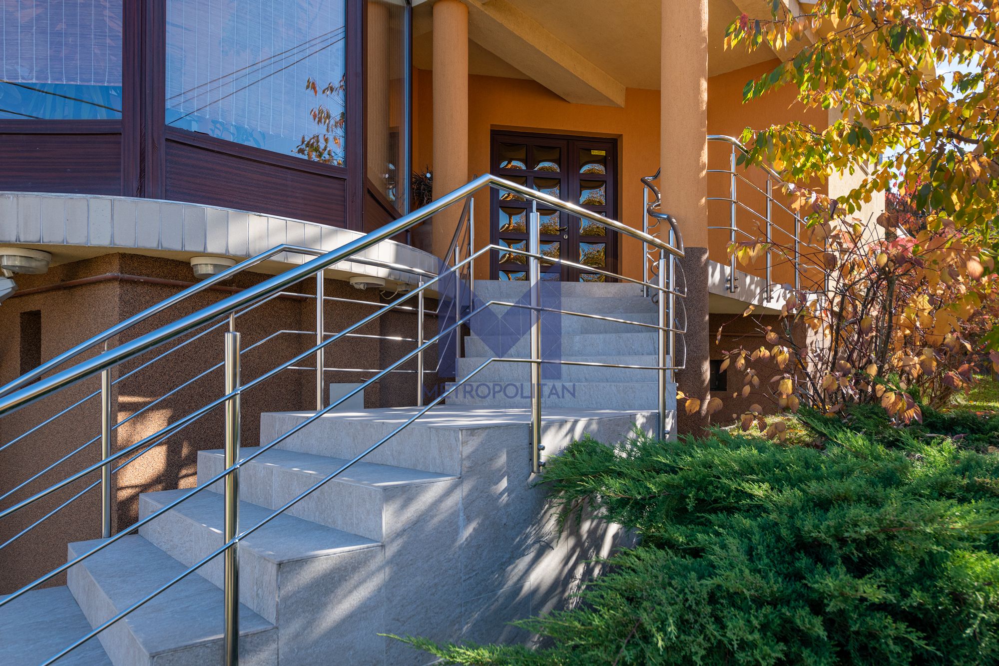 PARTERUL (132,42 mp) fiind spațiul de zi are un living generos de 30 mp cu șemineu și ieșire pe terasa, hol, vestibul, birou, seră de flori, 2 bucătarii, 2 bai, casa scării.