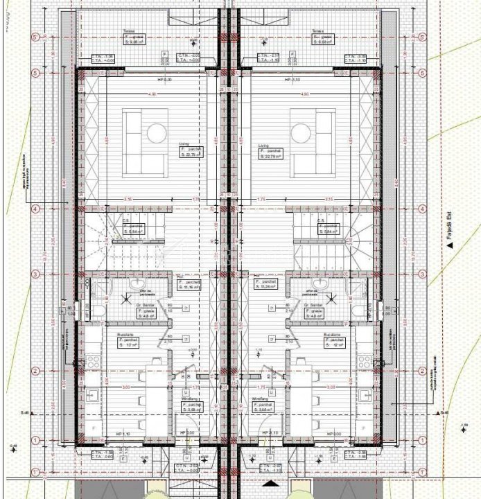 Casă cuplată - tip duplex, cu zid dublu de caramida + polistiren de 10 intre cele 2 unitati, situată într-o zonă rezidențială, cu acces facil spre Cluj-Napoca, localizată în Florești, pe strada Tauti, în vecinatatea Parcului Poligon. Strada este privata cu o latime de 8m care deserveste 5 proprietati.