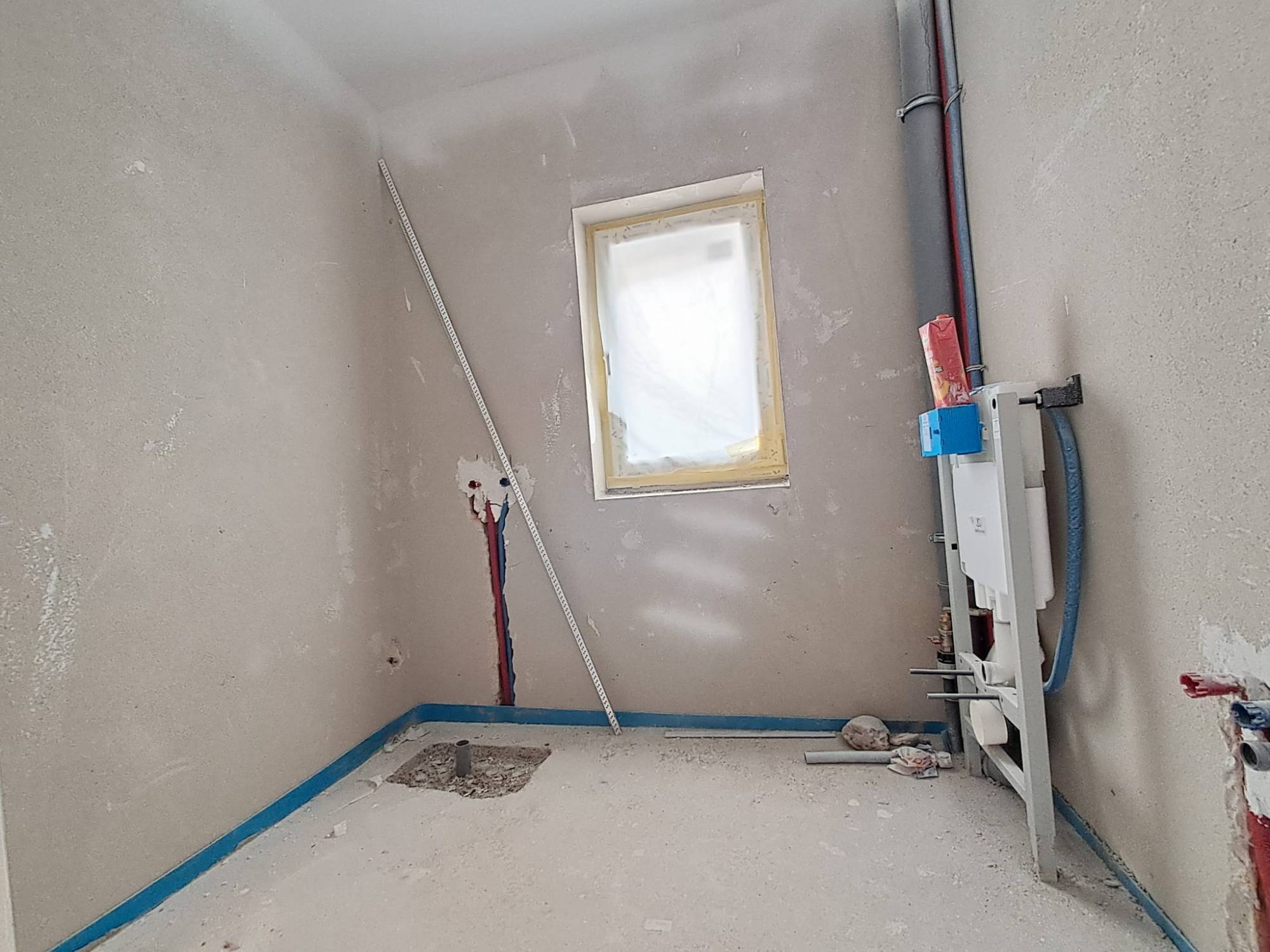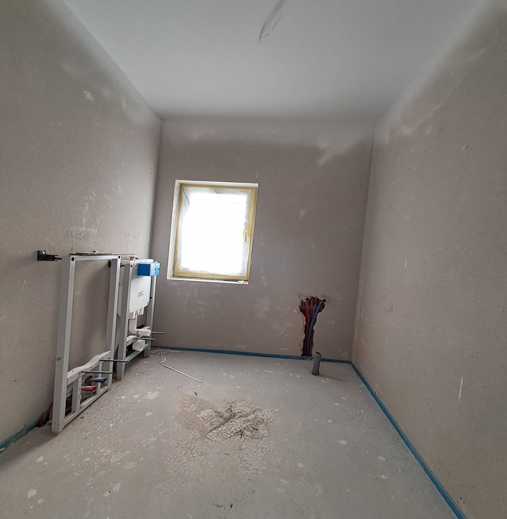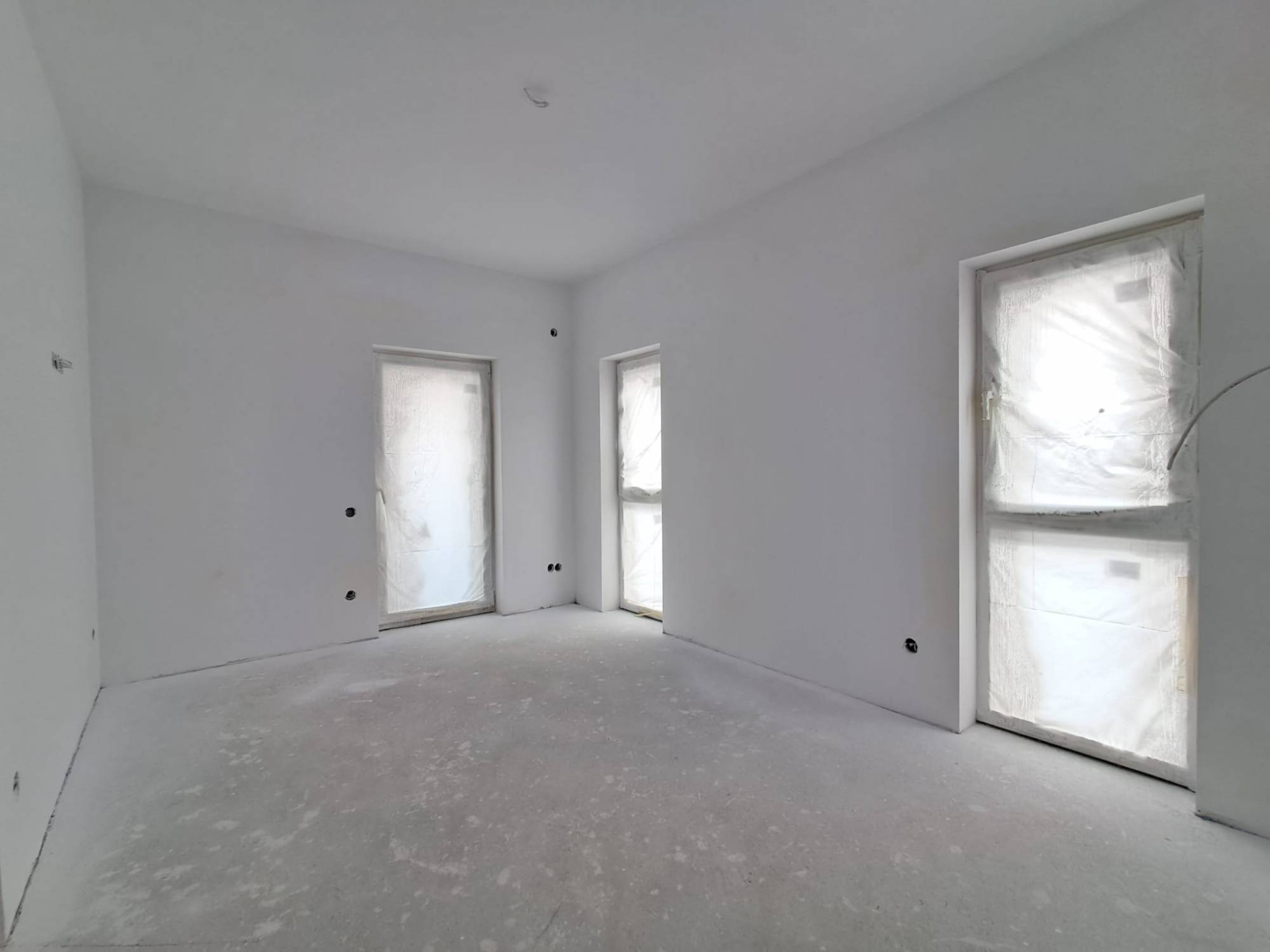 Stadiu finslaizat la exterior iar la interior peretii sunt gletuiti si zugraviti in lavabil, sape autonivelante, centrala termica proprie, incalzire prin pardoseala, geamuri tripan.